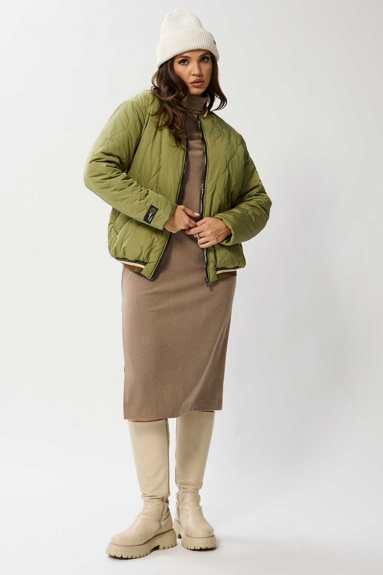 Куртка женская прямого силуэта, с застежкой на молнию. Воротник притачная стойка из отделочной трикотажной планки. Плечо спущенное. Карманы прорезные с листочкой. Низ изделия на трикотажной планке. На рукаве настрочен декоративный элемент. Куртка утепленная на утепленной подкладке для прохладно погоды. Без дополнительного утепления (кофта под куртку) будет комфортно от 0 до -5 градусов. Если на улице более низкая температура, то необходимо дополнительно надевать теплую одежду.