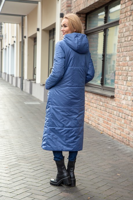 Пальто женское из плащевой ткани на утеплителе нового поколения "изософт", двухстороннее, двухцветное. Пальто прямого покроя, удлиненное, с втачным двухшовным рукавом с отложной манжетой по низу, по переду-карманы в горизонтальных рельефных швах, изделие двубортное, застегивается на кнопки, с капюшоном. Рекомендуется носить при температуре -10 и до -20 градусов.