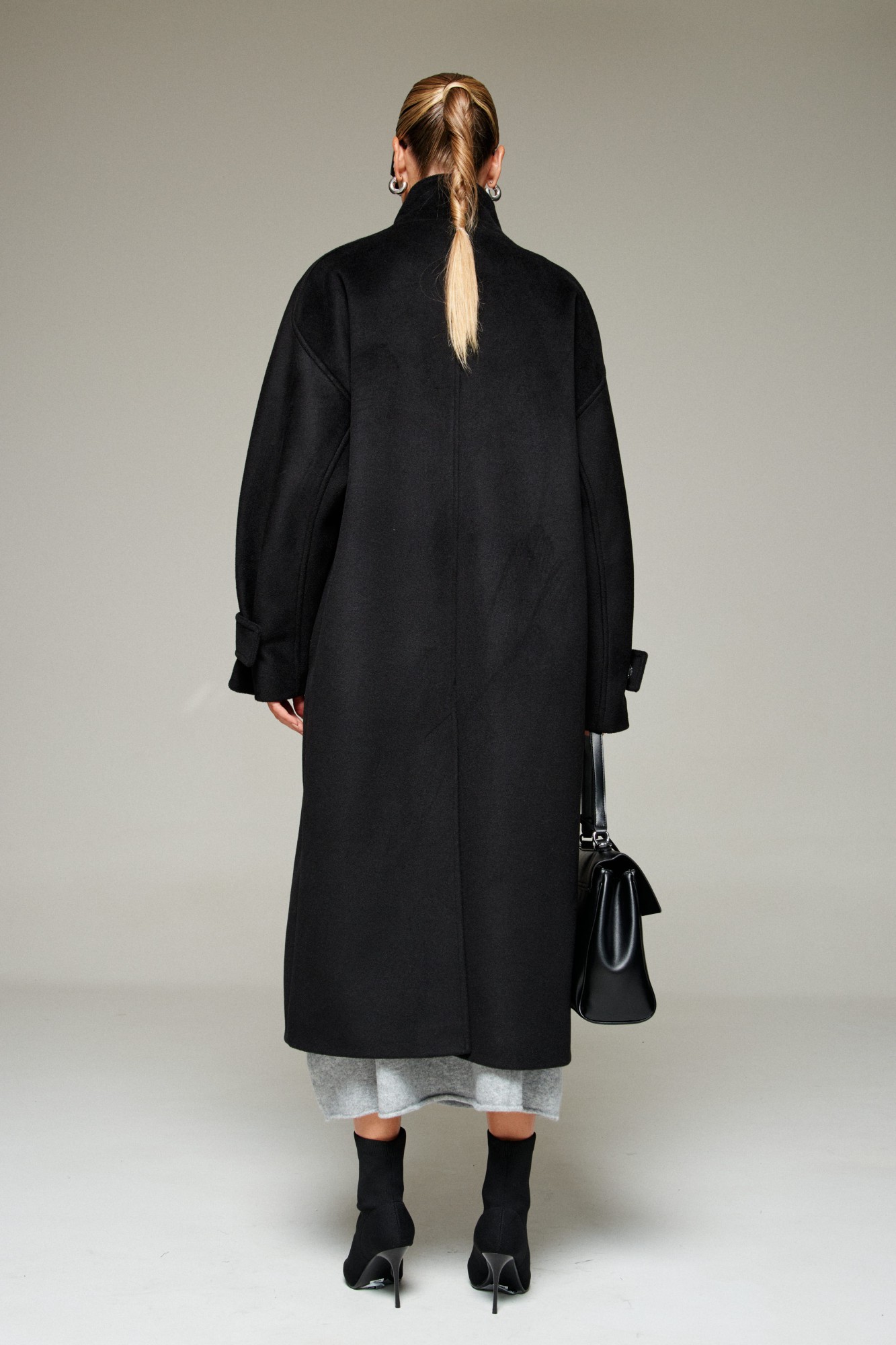 Пальто выполнено из шерстяной ткани, которая обеспечивает теплоизоляцию и защиту от ветра и влаги, подходит для межсезонья и теплой зимы. Двубортное, на подкладке. Изделие рассчитано на температурный режим от +10 до -5 градусов. Модель прямого силуэта актуального покроя «летучая мышь»; предназначена для повседневного использования.