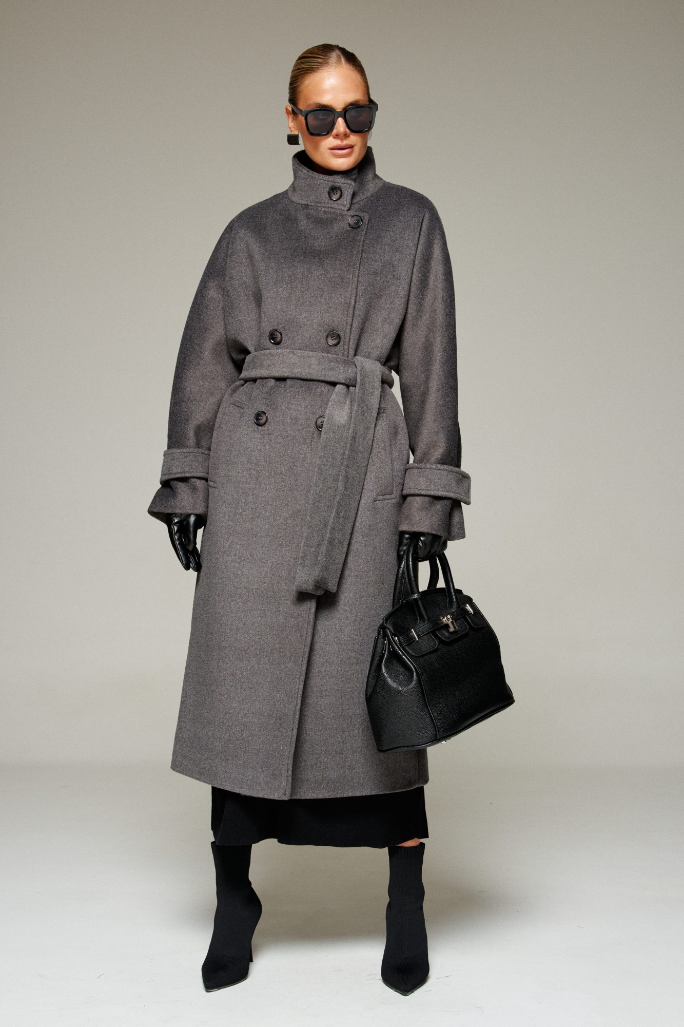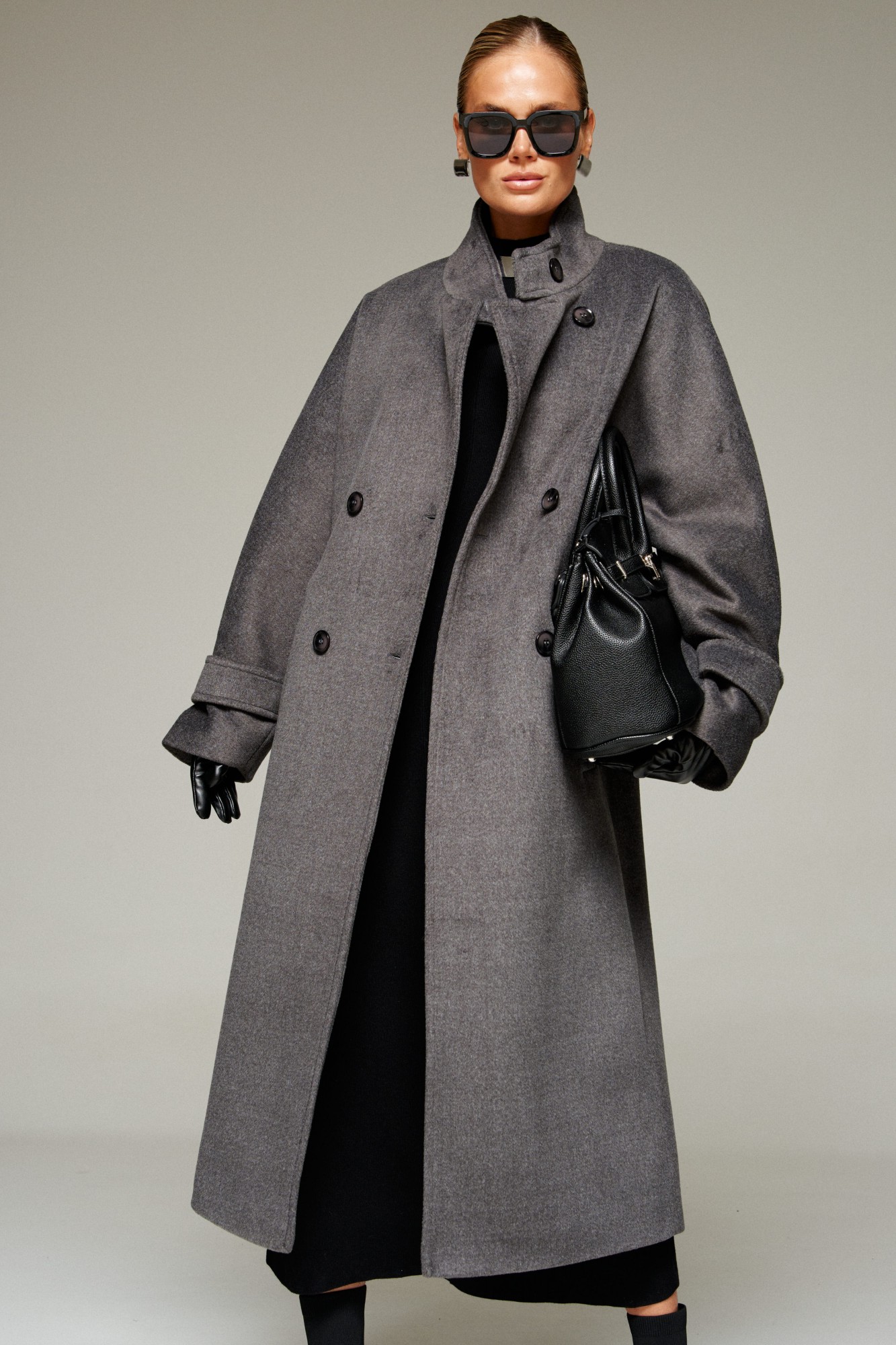 Пальто выполнено из шерстяной ткани, которая обеспечивает теплоизоляцию и защиту от ветра и влаги, подходит для межсезонья и теплой зимы. Двубортное, на подкладке. Изделие рассчитано на температурный режим от +10 до -5 градусов. Модель прямого силуэта актуального покроя «летучая мышь»; предназначена для повседневного использования.
