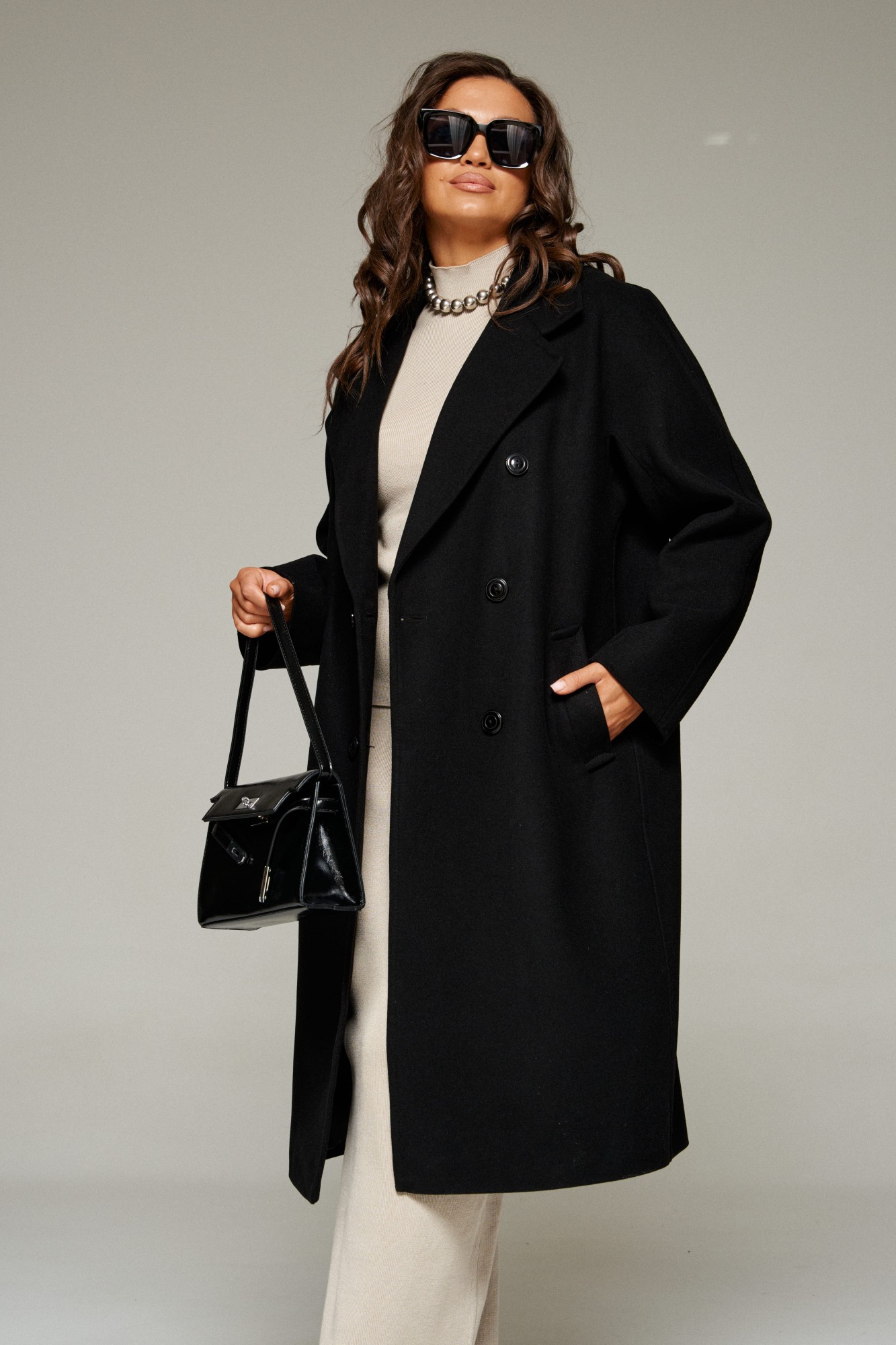 Пальто выполнено из шерстяной ткани, которая обеспечивает теплоизоляцию и защиту от ветра и влаги, подходит для межсезонья и теплой зимы. Двубортное, на подкладке. Изделие рассчитано на температурный режим от +10 до -5 градусов. Модель прямого силуэта, чуть расширенная к низу, покроя «летучая мышь»; предназначена для повседневного использования.