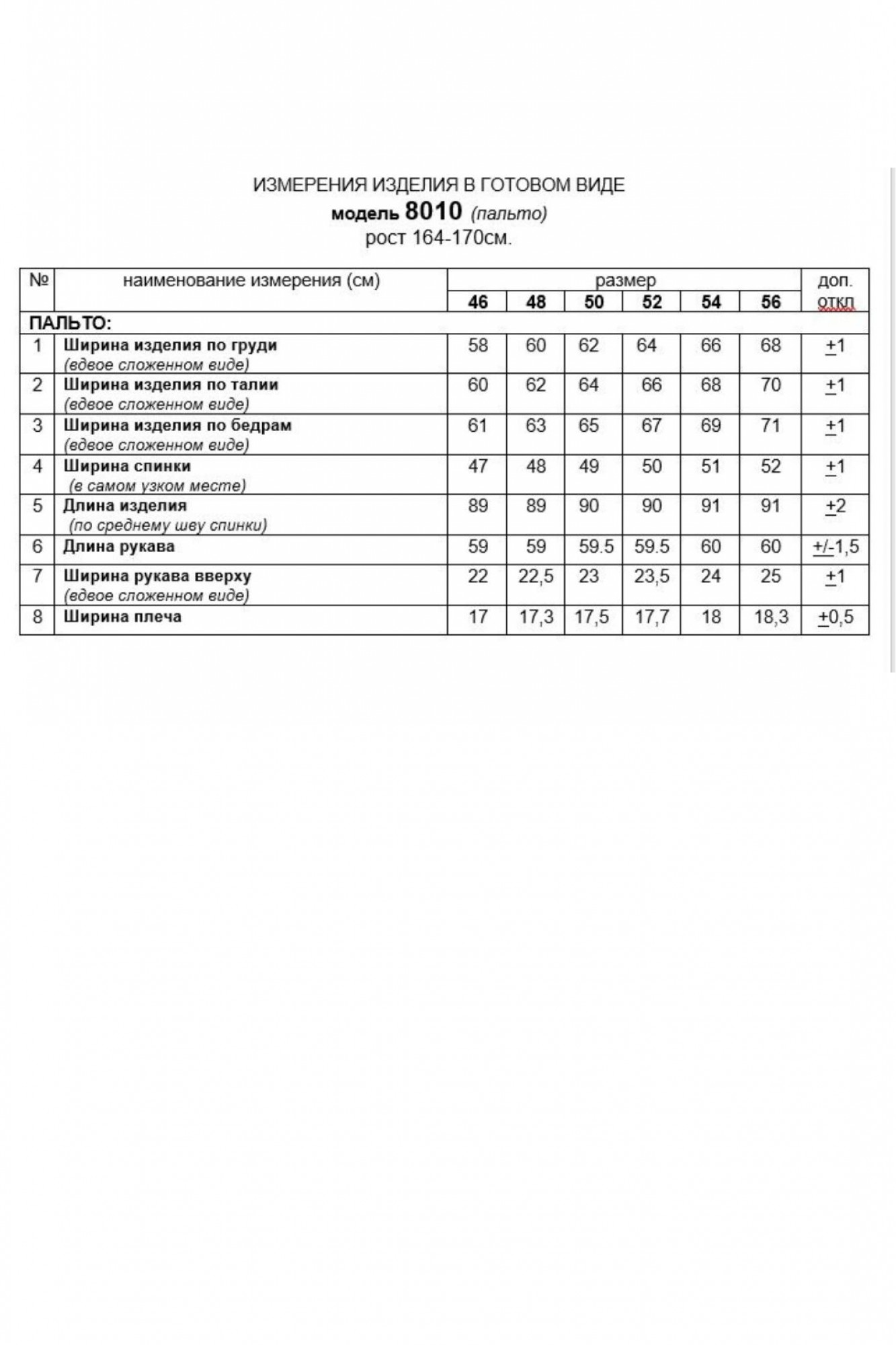 Длина рукава (с плечом) ~ 77 см. (+1.5 см.)
