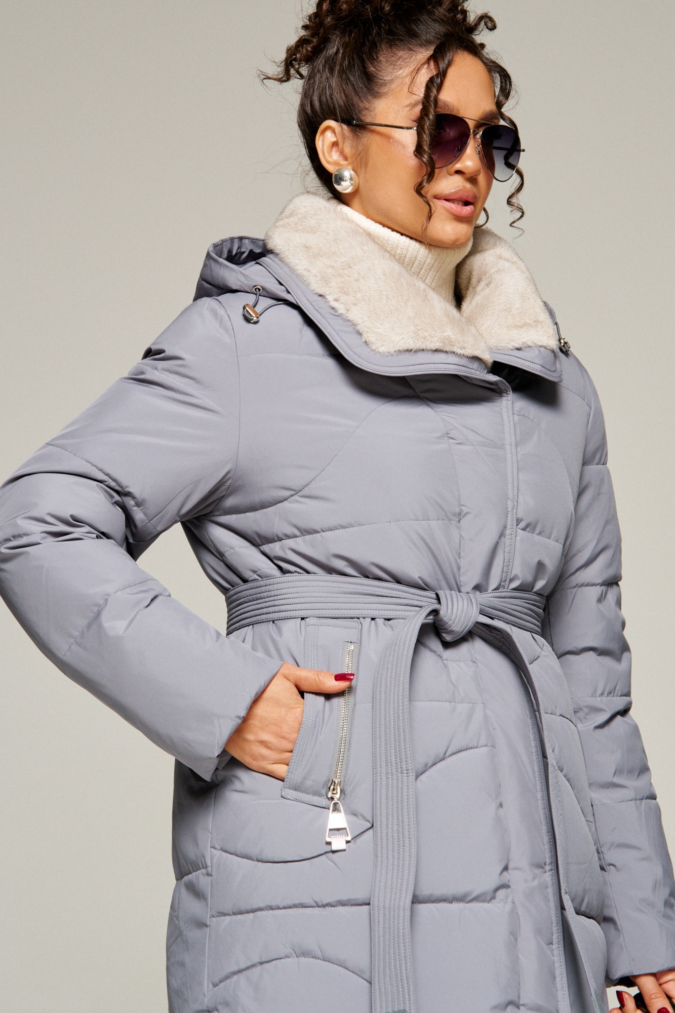 Воротник тип «апаш» с возможностью застегивания до верха. Внутренняя часть воротника обработана искусственным мехом «норка».