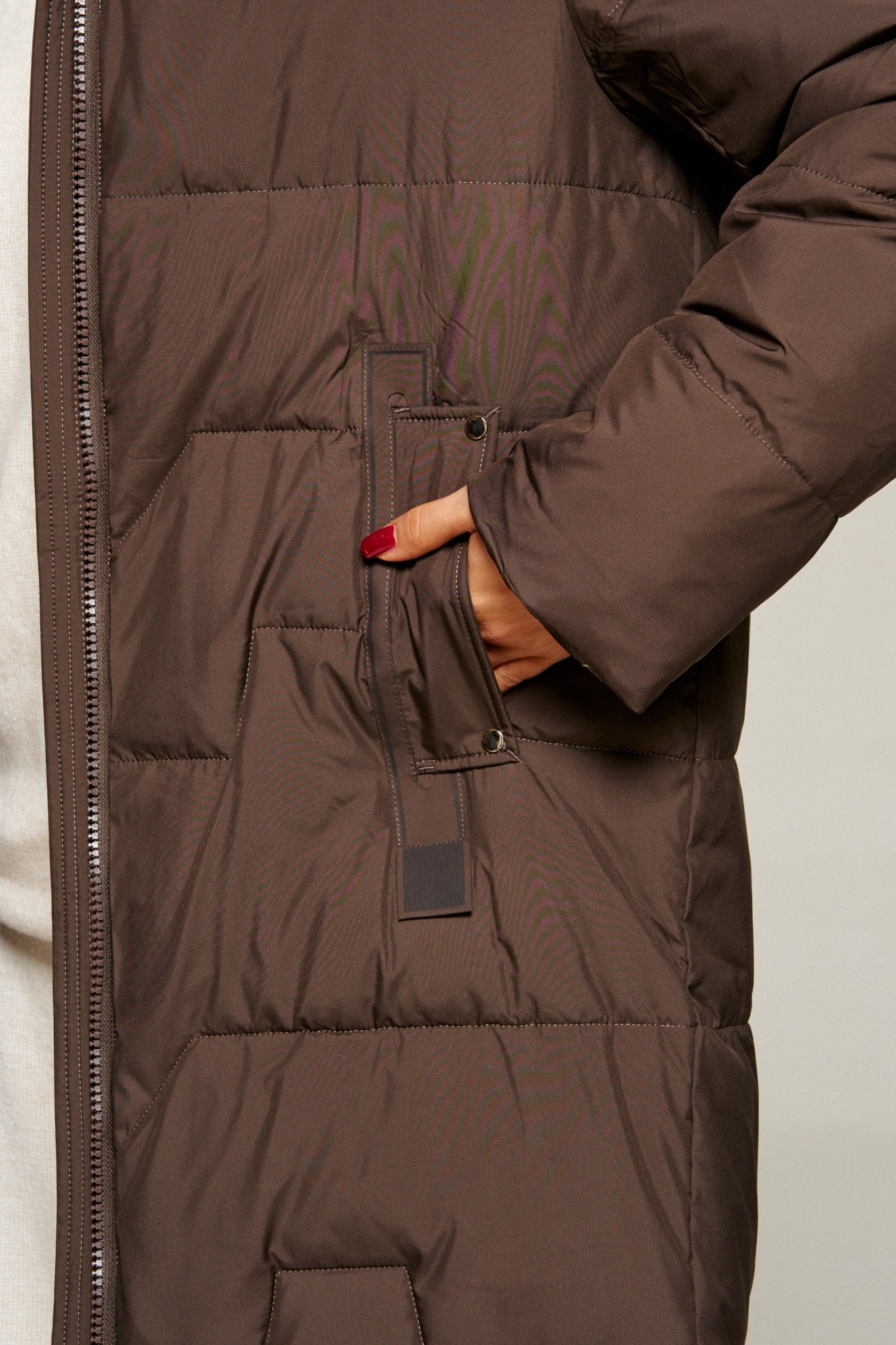 Пальто выполнено из прочной, влагостойкой и приятной на ощупь полиэстерной ткани; на синтетической подкладке. Утеплитель холлофайбер 200 г/м. кв. предназначен для использования изделия при температурном режиме от -10 до -20 градусов.