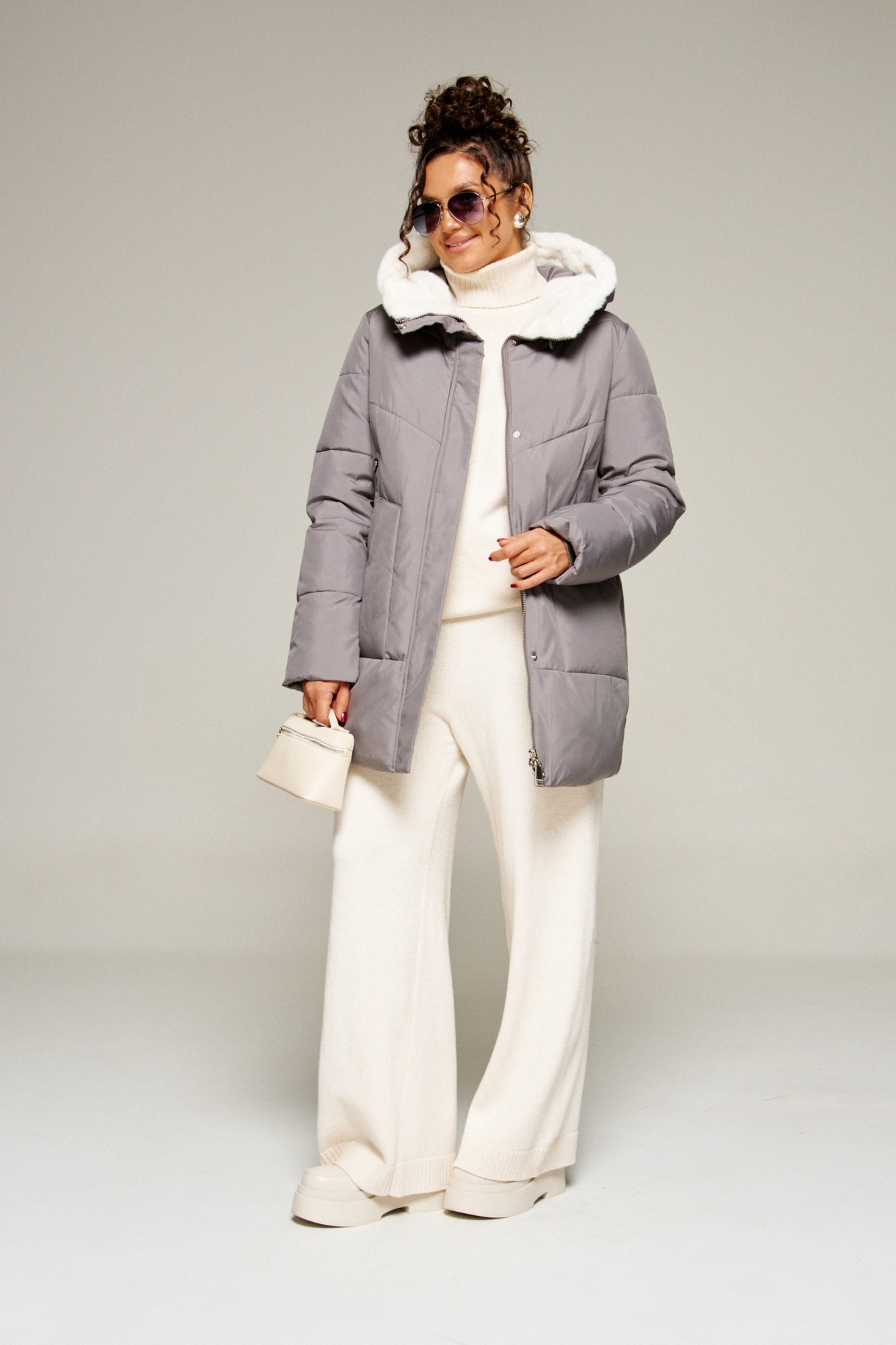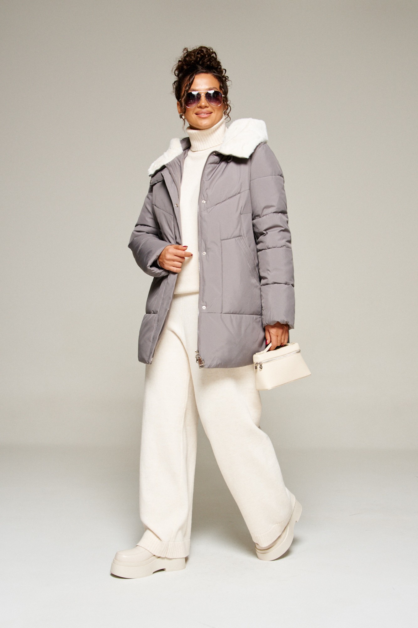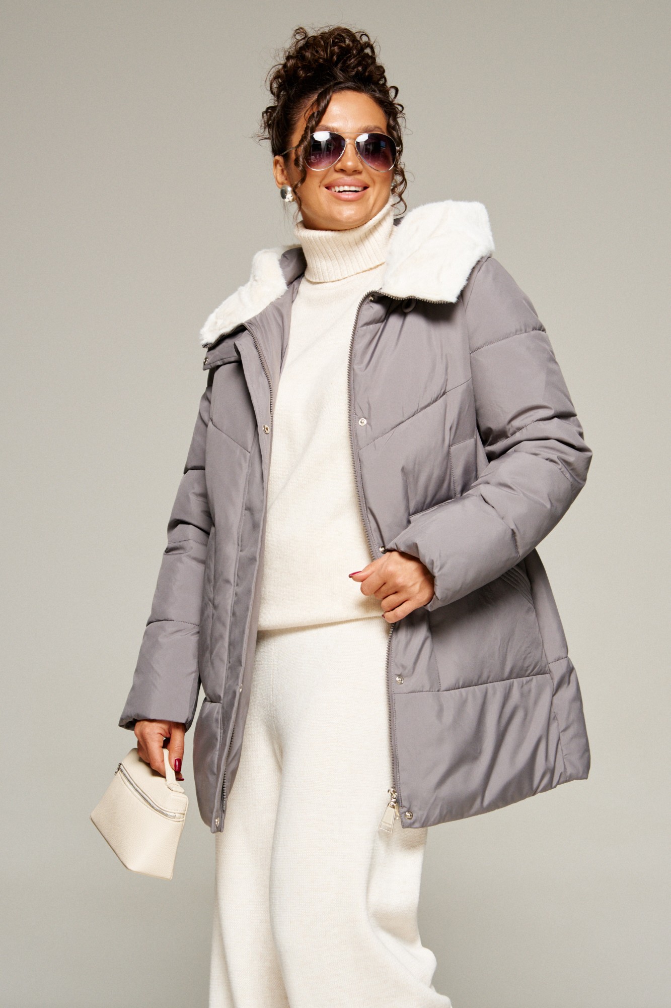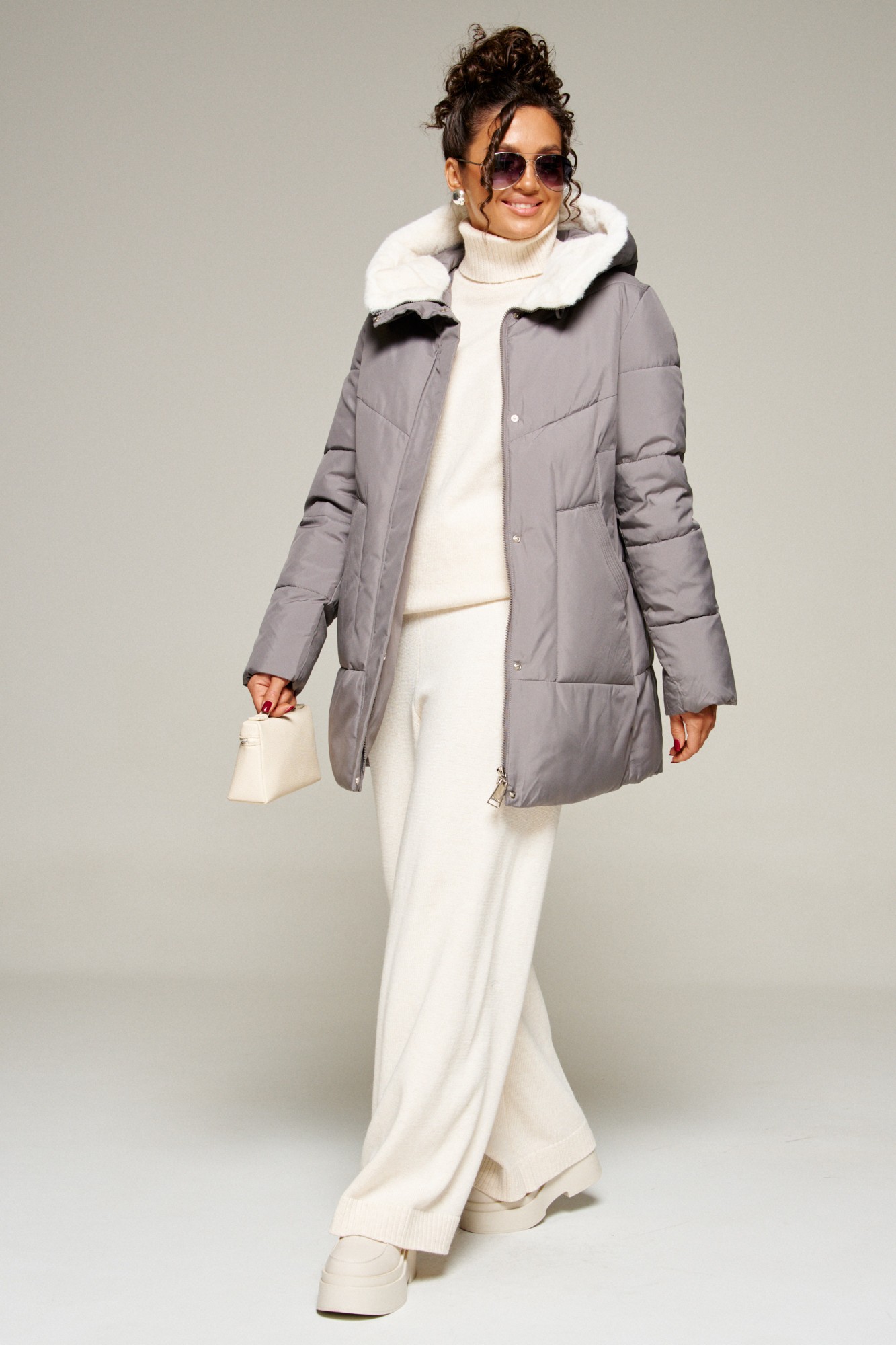 Капюшон с застежкой спереди умеренного объема. По периметру капюшона с внутренней стороны выполнена оторочка из искусственного меха, которая выполняет декоративную и защитную функции, создавая дополнительное тепло и защиту от ветра и холода.