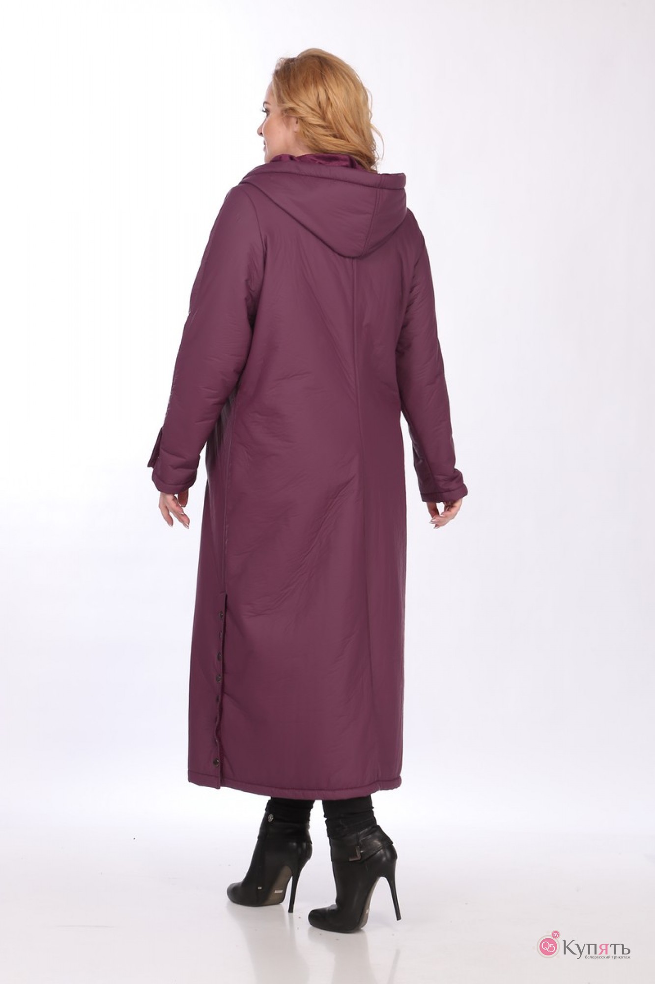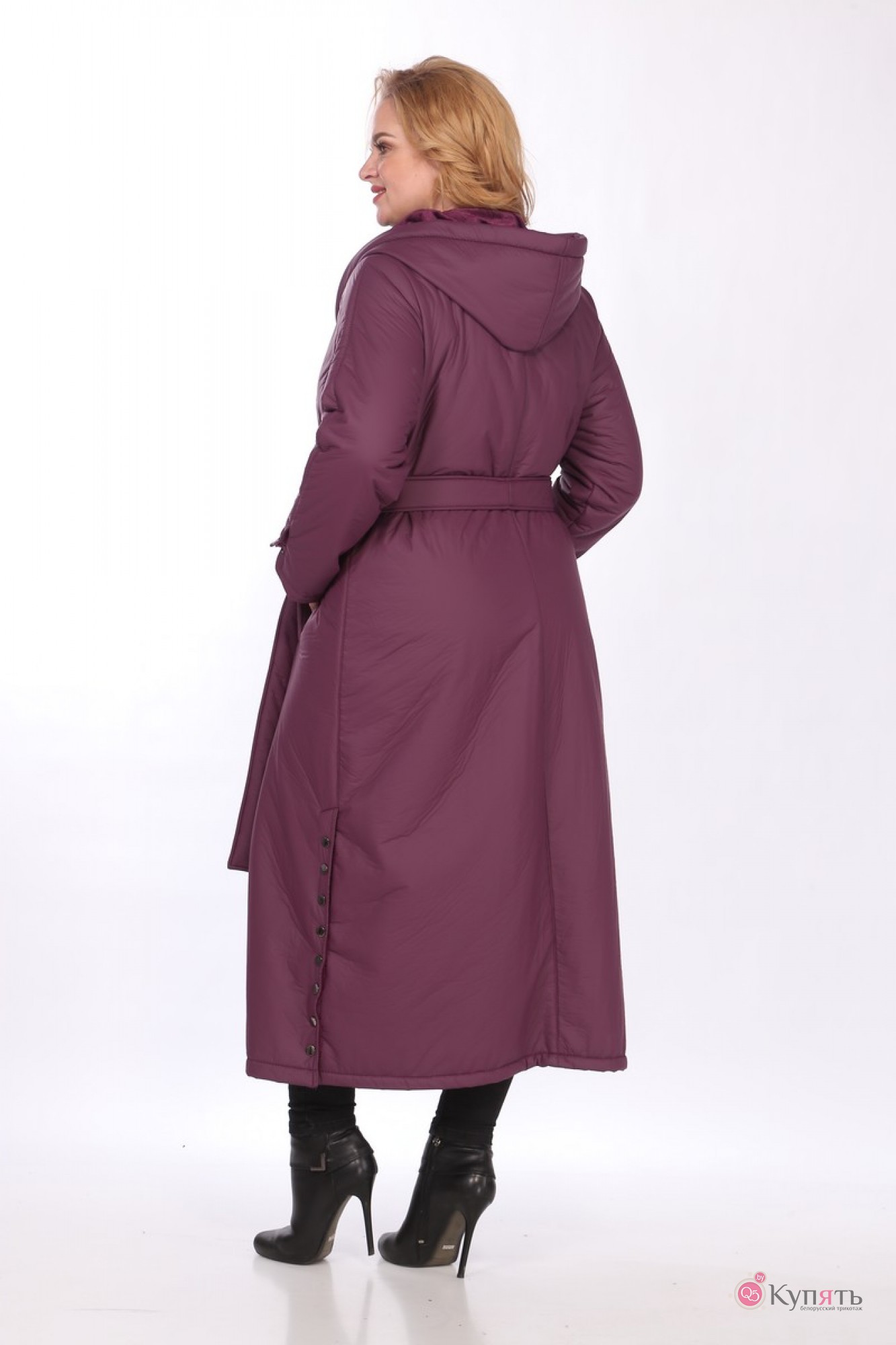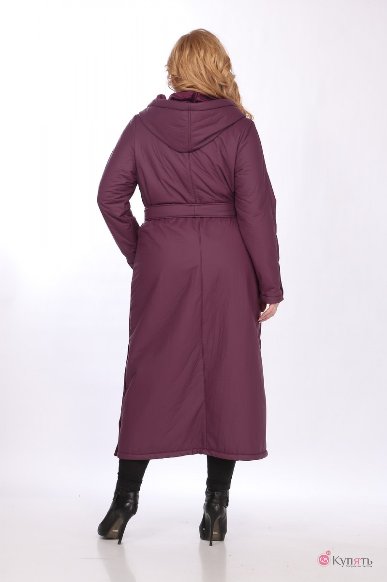 Пальто женское длинное из плащевой ткани. Полочка с рельефами, в которых расположены внутренние функциональные карманы. Застежка центральная на косую на 4 кнопки. Капюшон втачной. Спинка с центральным швом. Рукав втачной одношовный. В боковых швах пальто и на рукавах функциональные шлицы на кнопках. В комплекте пояс из основной ткани. Пальто без утеплителя и подкладки, изнанка - экомех. Выполнено из мягкой непромокаемой ткани. Все кнопки на изделии металлические. Примечание: Перед первой примеркой рекомендуется пройти изнанку (мех) изделия липким роликом для чистки одежды.