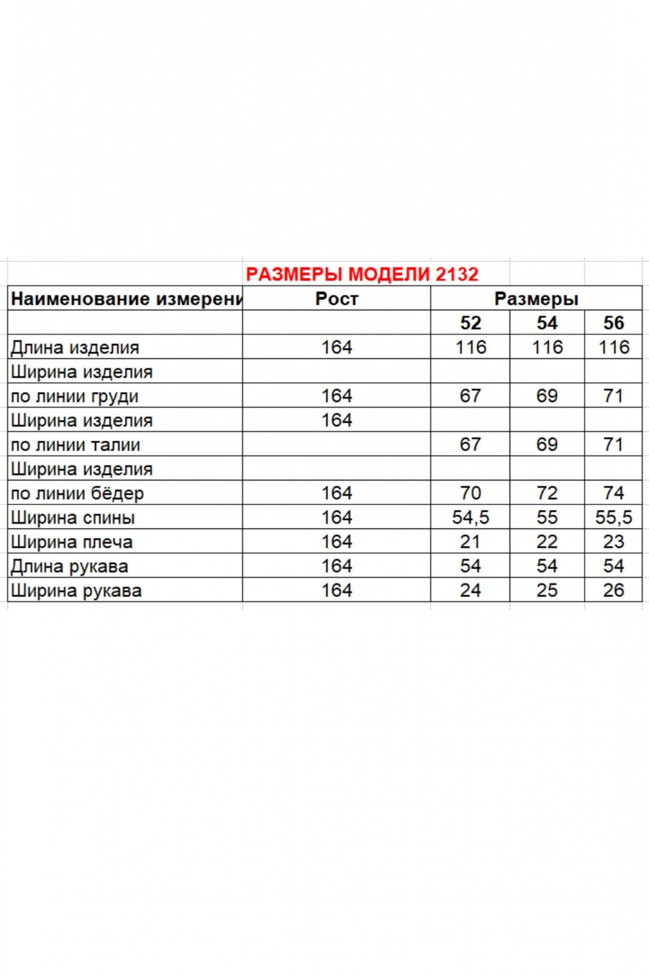 Длина по спинке 116 см, длина рукава 54 см.