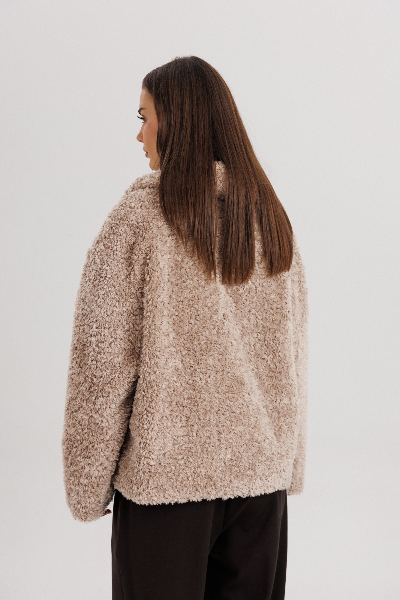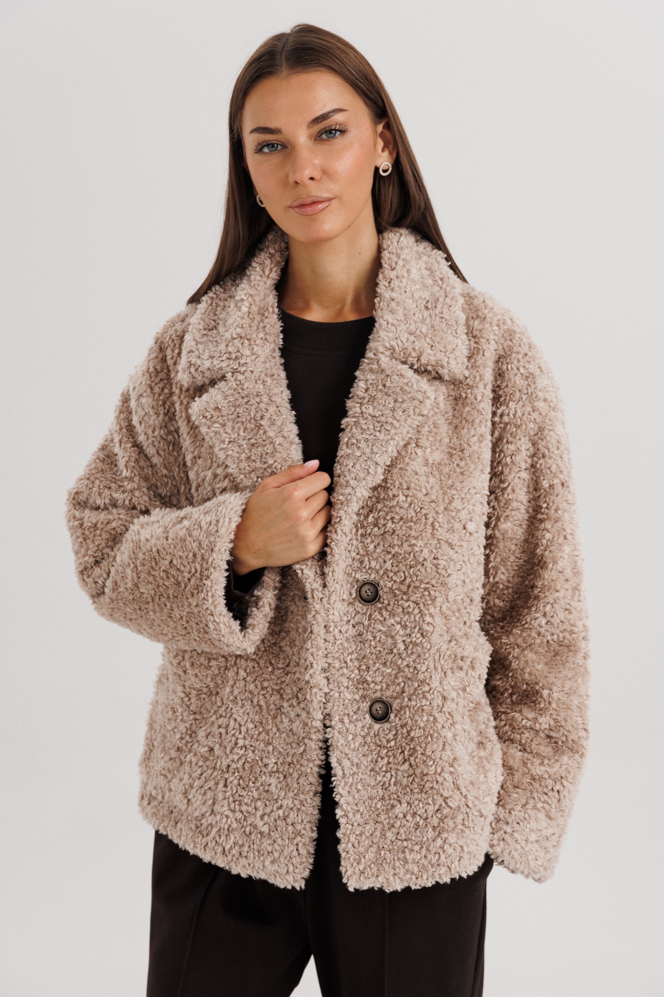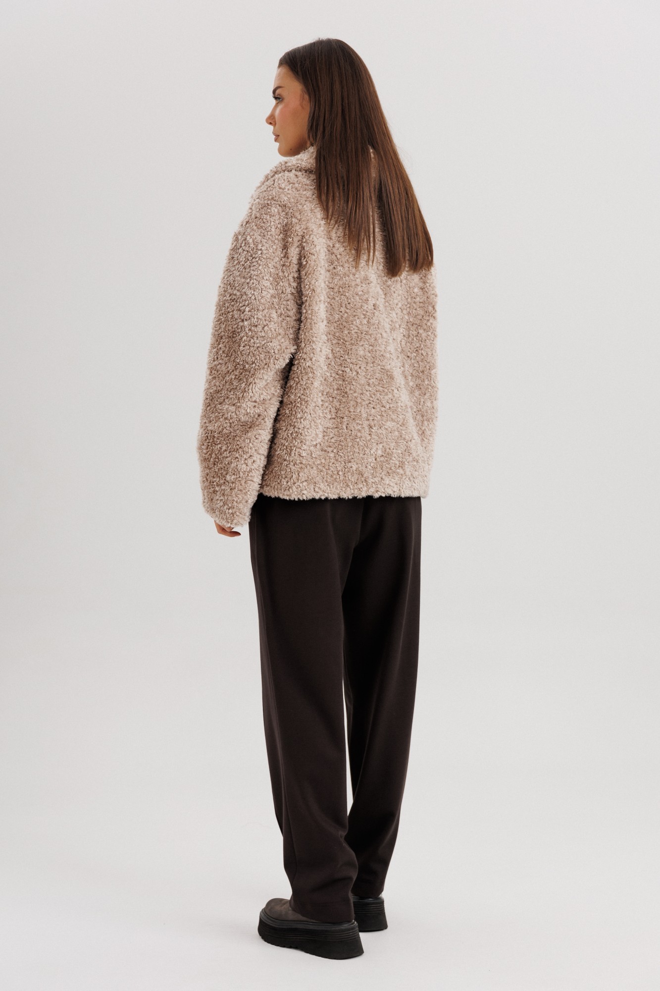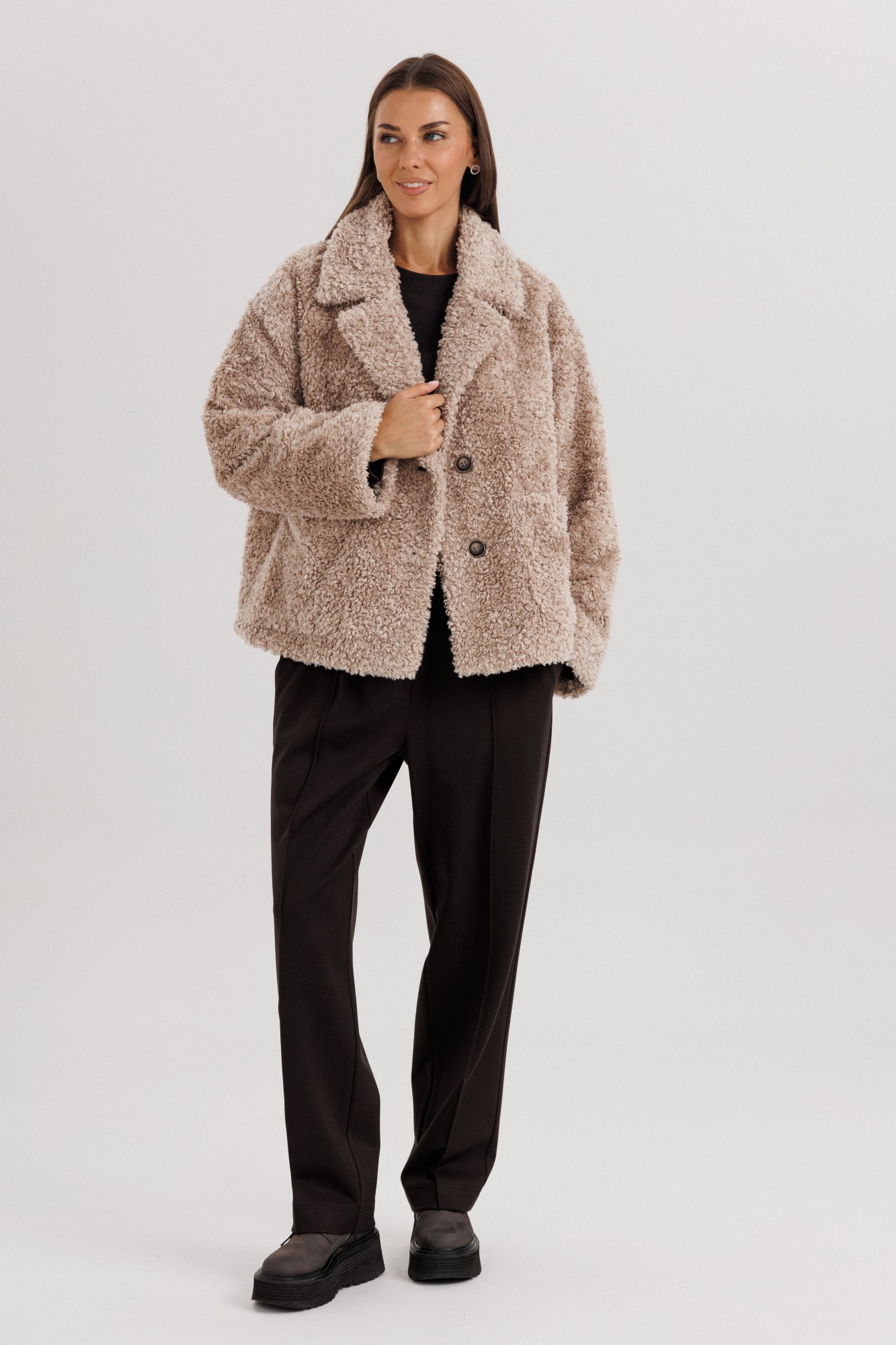 Женское укороченное пальто из искусственного меха — современное и уютное решение для холодного сезона. Мягкий фактурный мех дарит комфорт и тепло, а укороченный силуэт подчёркивает лёгкость и актуальность образа. Модель выполнена с однобортной застёжкой на пуговицы, широким отложным воротником и удобными накладными карманами. Универсальный бежевый оттенок легко сочетается с различными элементами гардероба: будь то классические брюки, джинсы или романтичные платья. Такое пальто станет стильным акцентом в повседневных и вечерних образах, позволяя выглядеть модно и чувствовать себя максимально комфортно.