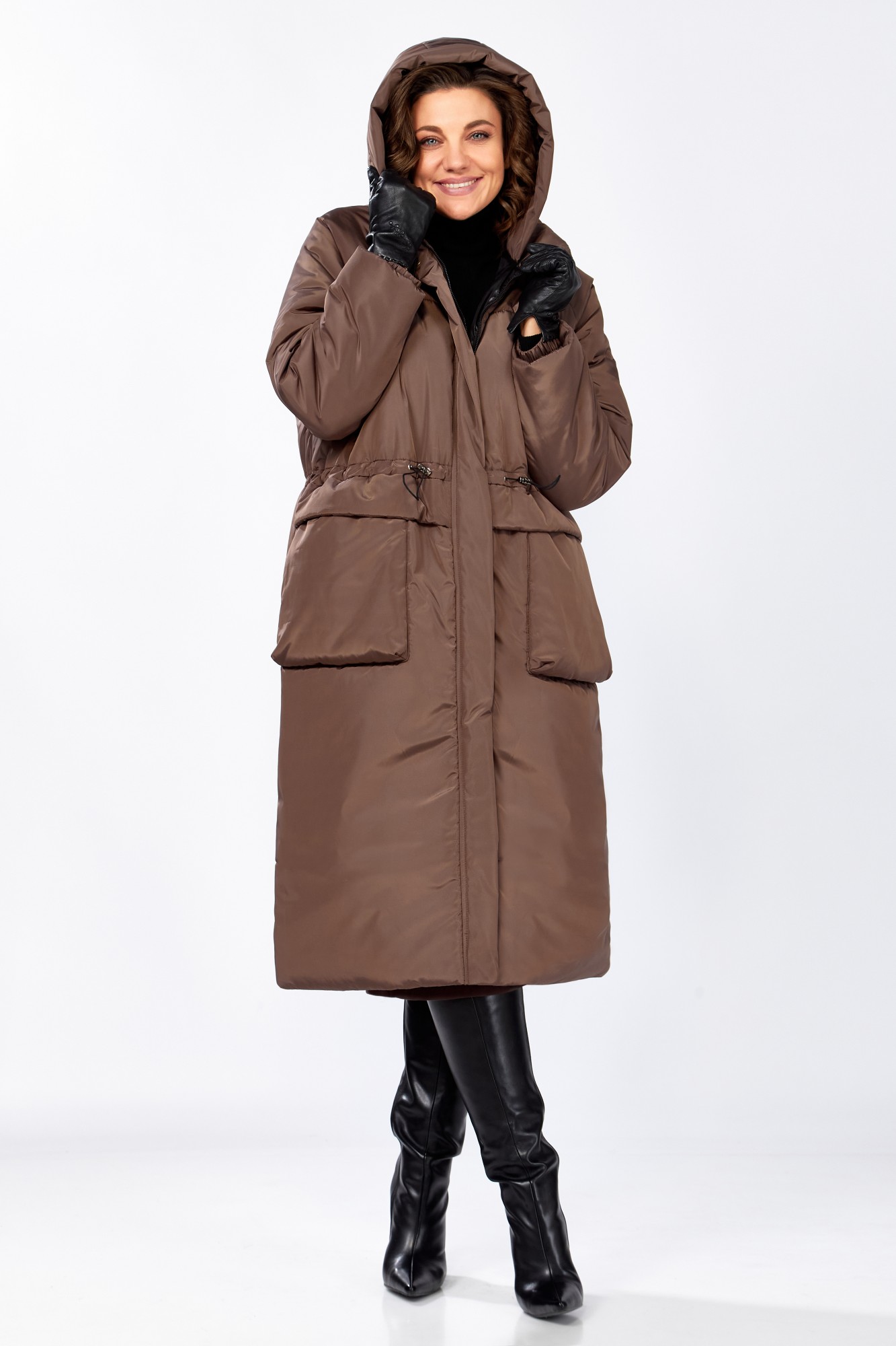 Элегантное зимнее пальто в трендовом оттенке выполнена из высококачественной курточные ткани сочетает в себе практичность и стиль ветрозащитной мембрана подкладка надёжно защищает от холодного ветра и влаги а современные утеплитель Синтепон feelGood 200 г./м.кв., обеспечивает комфорт и тепло. Прямой крой дополнен кулисой на талии что позволяет регулировать посадку и подстраивать силуэт под индивидуальные предпочтения вместительная накладные карманы делают модель удобной для повседневной носки , рукав реглан с потайной манжетой из кошкорсе и объемный капюшон дарит дополнительную защиту прохладную ветреную погоду строгий лаконичный дизайн подойдёт как для городских прогулок так и для более деловых образов, пальто удачно сочетает лёгкость комфорт и изысканность, оставаясь универсальной базовой вещью в гардеробе. Температурный режим от -5 до -15 °C.