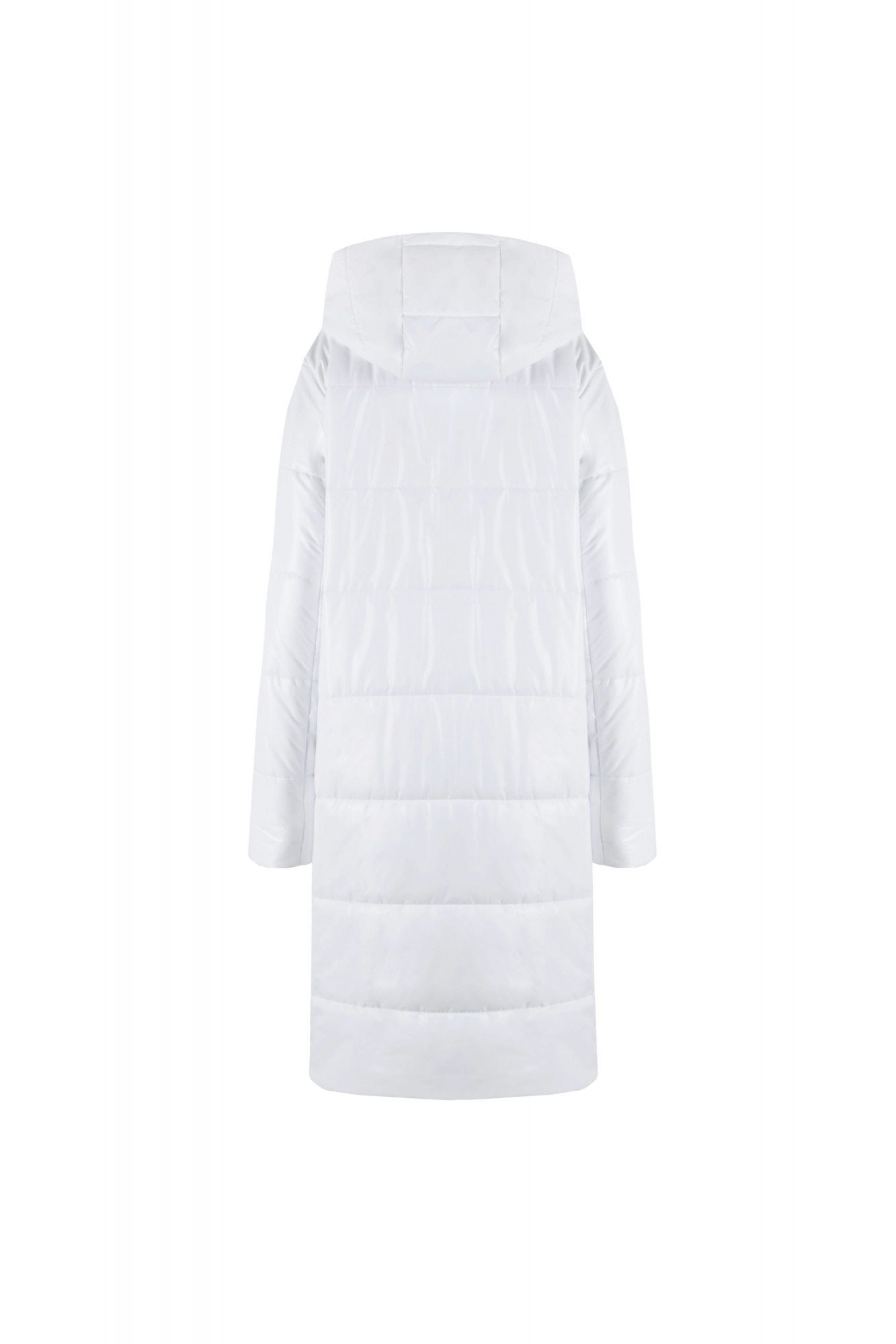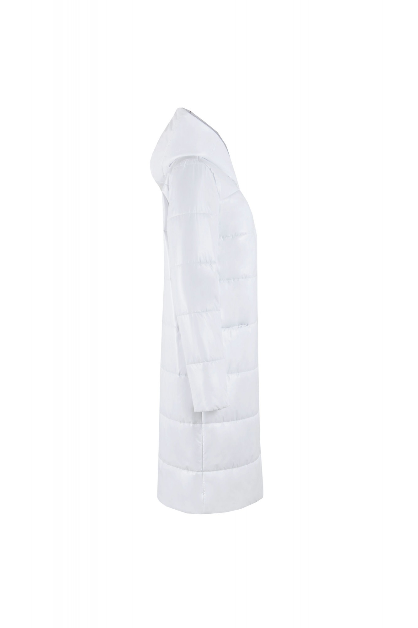 Пальто женское плащевое утепленное прямого силуэта, однобортное, длиной ниже колена, на подкладке. Застежка на пробивные потайные кнопки. Перед с карманами в поперечном шве. Рукав длинный, двухшовный. Пальто с капюшоном, из плащевой ткани, стеганой на утеплителе ISOSOFT 200г.