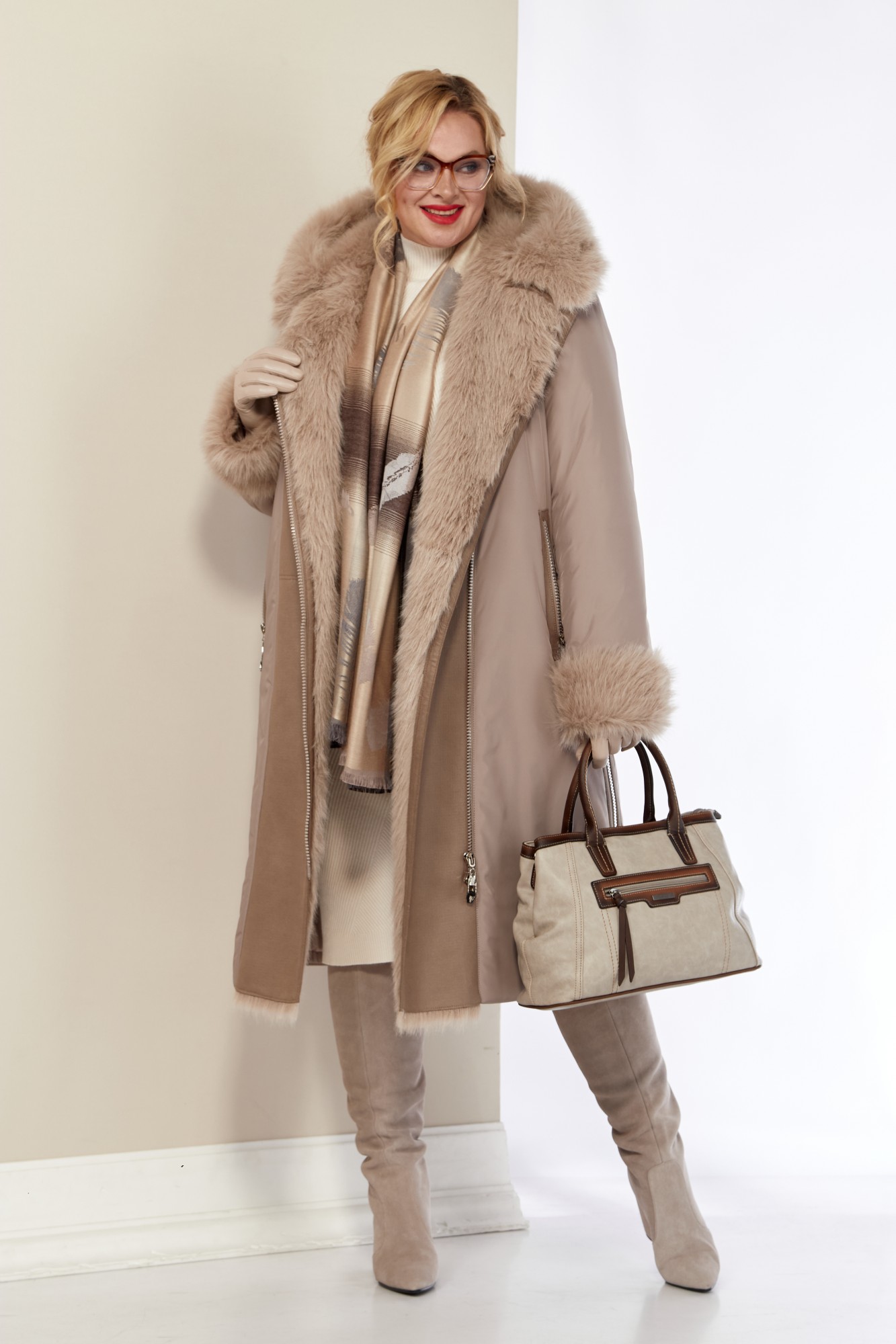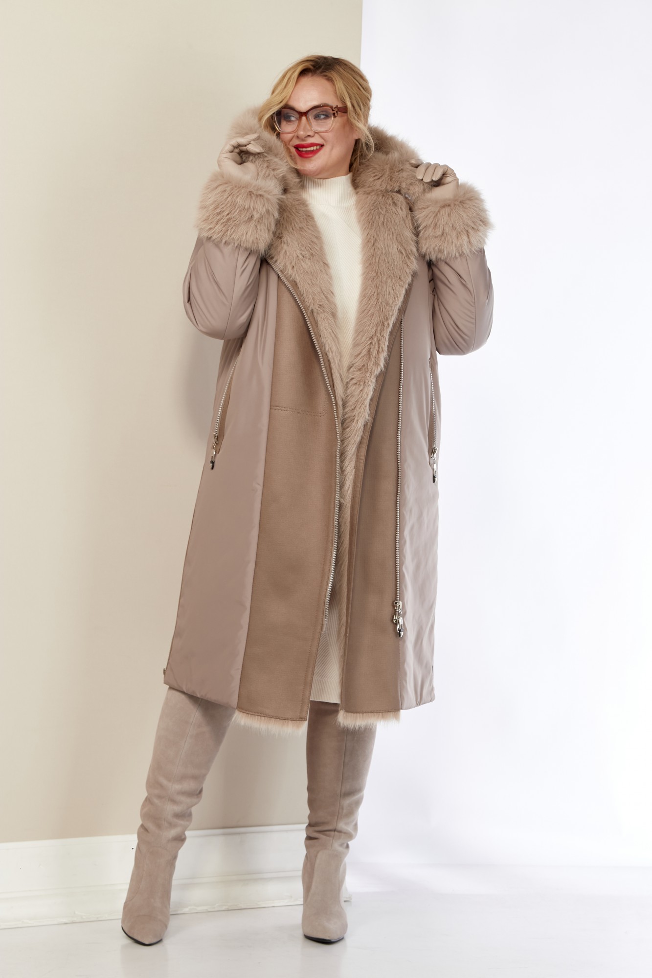 Уютное, элегантное зимнее пальто станет любимой вещью Вашего гардероба! Пальто выполнено из плотной матовой курточной ткани, при этом довольно мягкой, с водоотталкивающей пропиткой. На подкладке. Изделие комбинировано в сочетании с эко-кожей. По переду глубокие функциональные карманы прорезного типа, на молнии. Рукав втачной двух шовный. Застежка смещенная на тесьму-молнию (двухбегунковая ) по косой. Под борт, капюшон и рукава отделаны искусственным мехом, что придает изделию оригинальный вид.