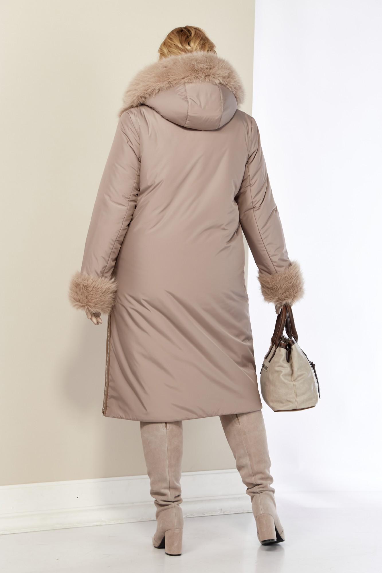 Капюшон не съемный. Спинка цельная. Подкладка прошита. По низу боковых швов декоративная молния (действующая). С внутренней стороны изделия имеется внутренний карман. Утеплитель «Верблюжья шерсть». Материал сохраняет свои качества после стирки, быстро сохнет, имеет большую воздухопроницаемость. Благодаря дорогой и качественной фурнитуре, а также оригинальной отделки, пальто смотрится дорого и элегантно.