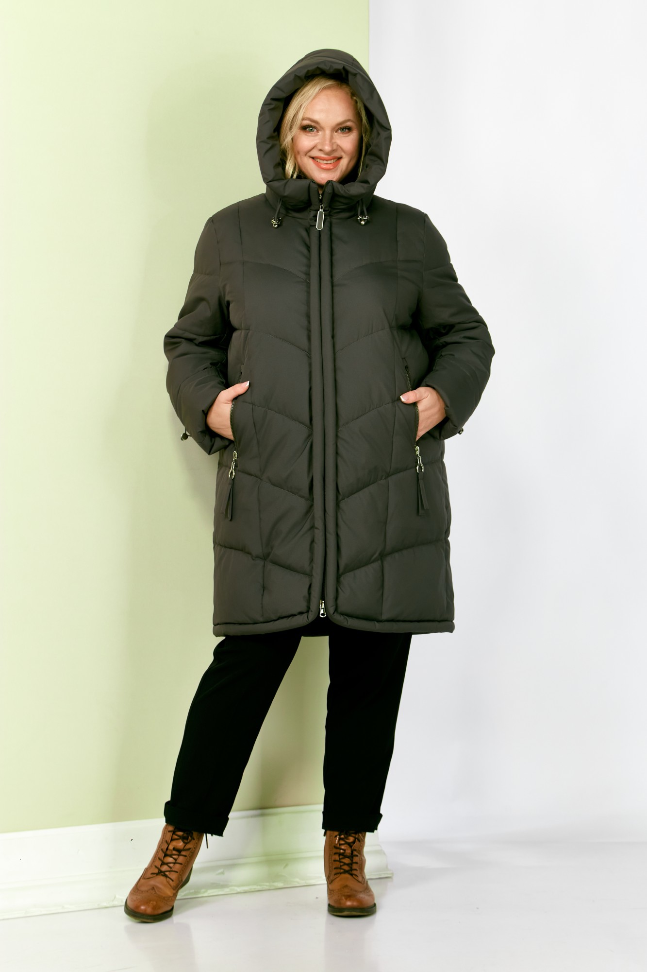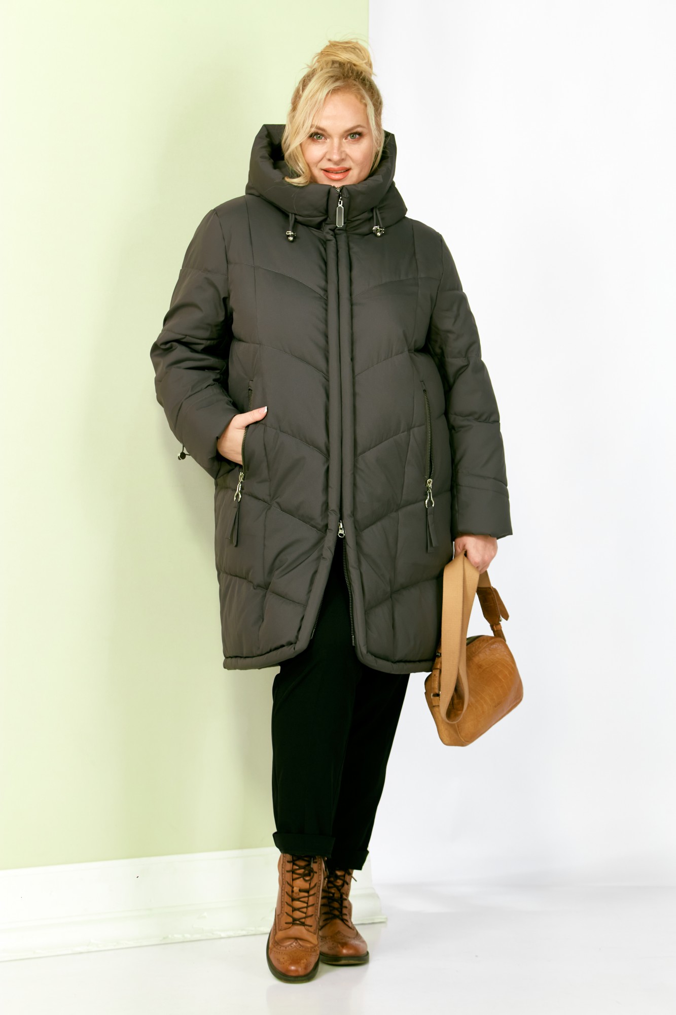Стильное и модное женское полупальто, которое идеально подойдет для холодных дней, обеспечивая комфорт и защиту от ветра. Изделие прямого, классического стиля. Модель выполнена из курточной матовой ткани высокого качества, непромокаемая. Утеплитель «Холлофайбер» хорошо держит форму и не сбивается. По переду центральная застежка на молнии. Карманы прорезного типа с декоративным элементом. Рукав втачной. Капюшон не съемный, регулируется декоративным шнуром. По переду и спинке рельефные швы. Низ бортов с закругленным краем.