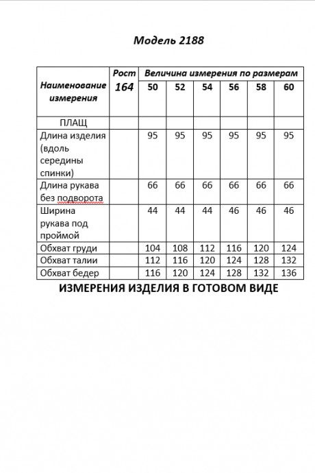 Длина рукава от плечевого шва 66 см. Длина изделия по спинке от шва втачивания капюшона 95 см.