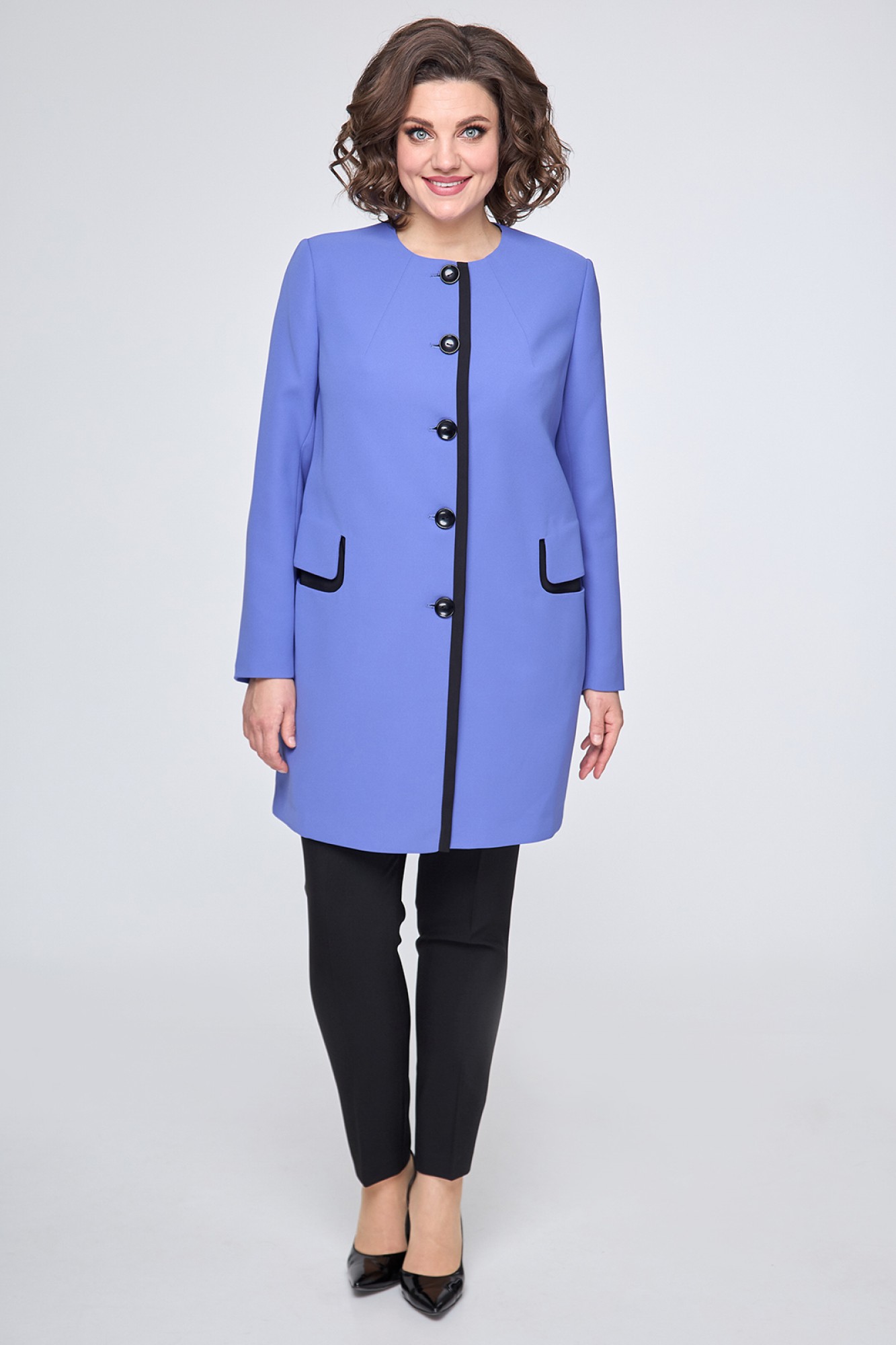 Женский плащ идеально подойдет для прохладной погоды. Силуэт прямой. По спинке средний шов. Черная отделка. Застежка на пуговицах. Перед с рельефными выточками, исходящими из горловины. Два прорезных кармана спереди. Полностью на подкладке.