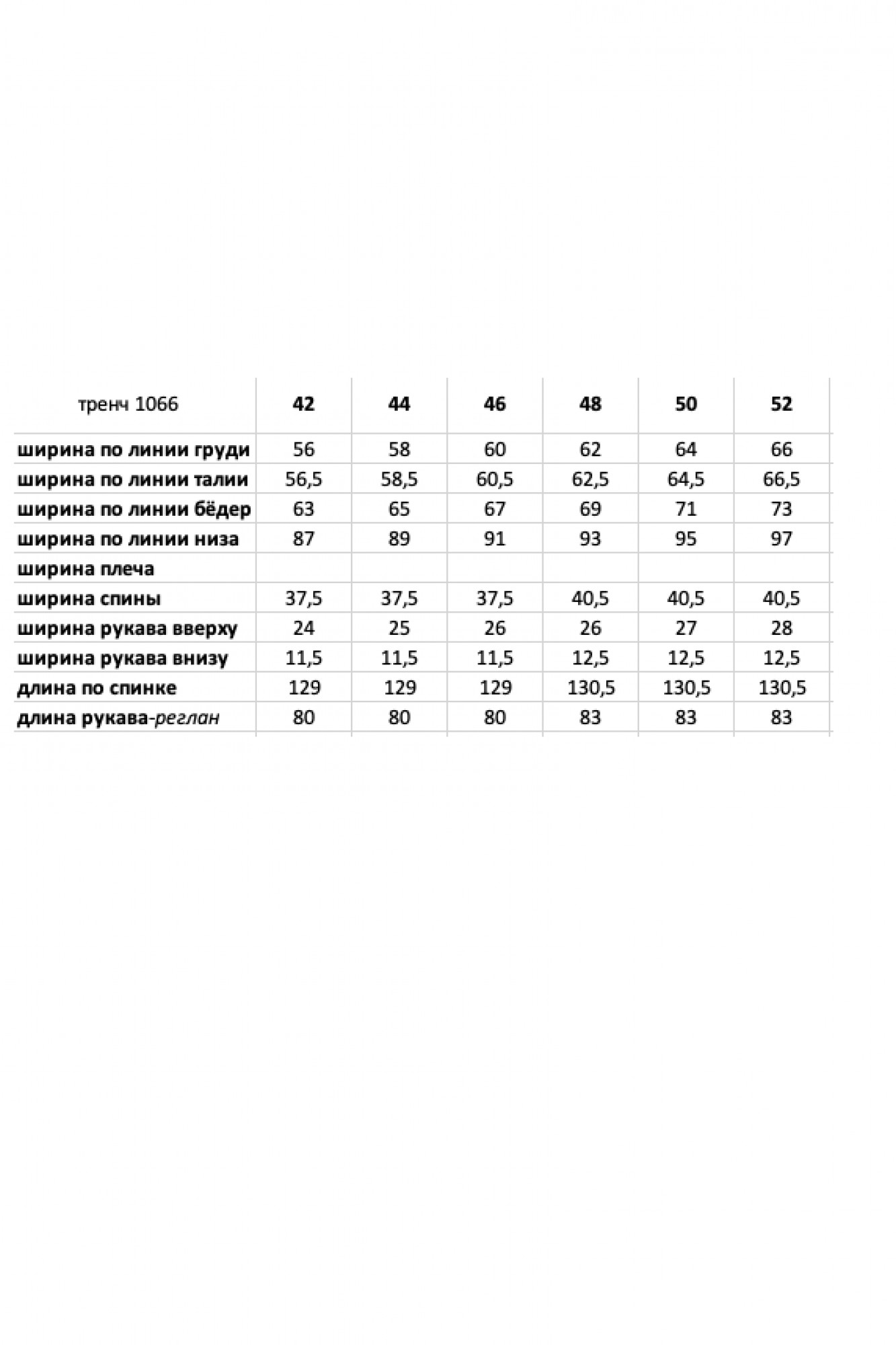 Таблица размеров