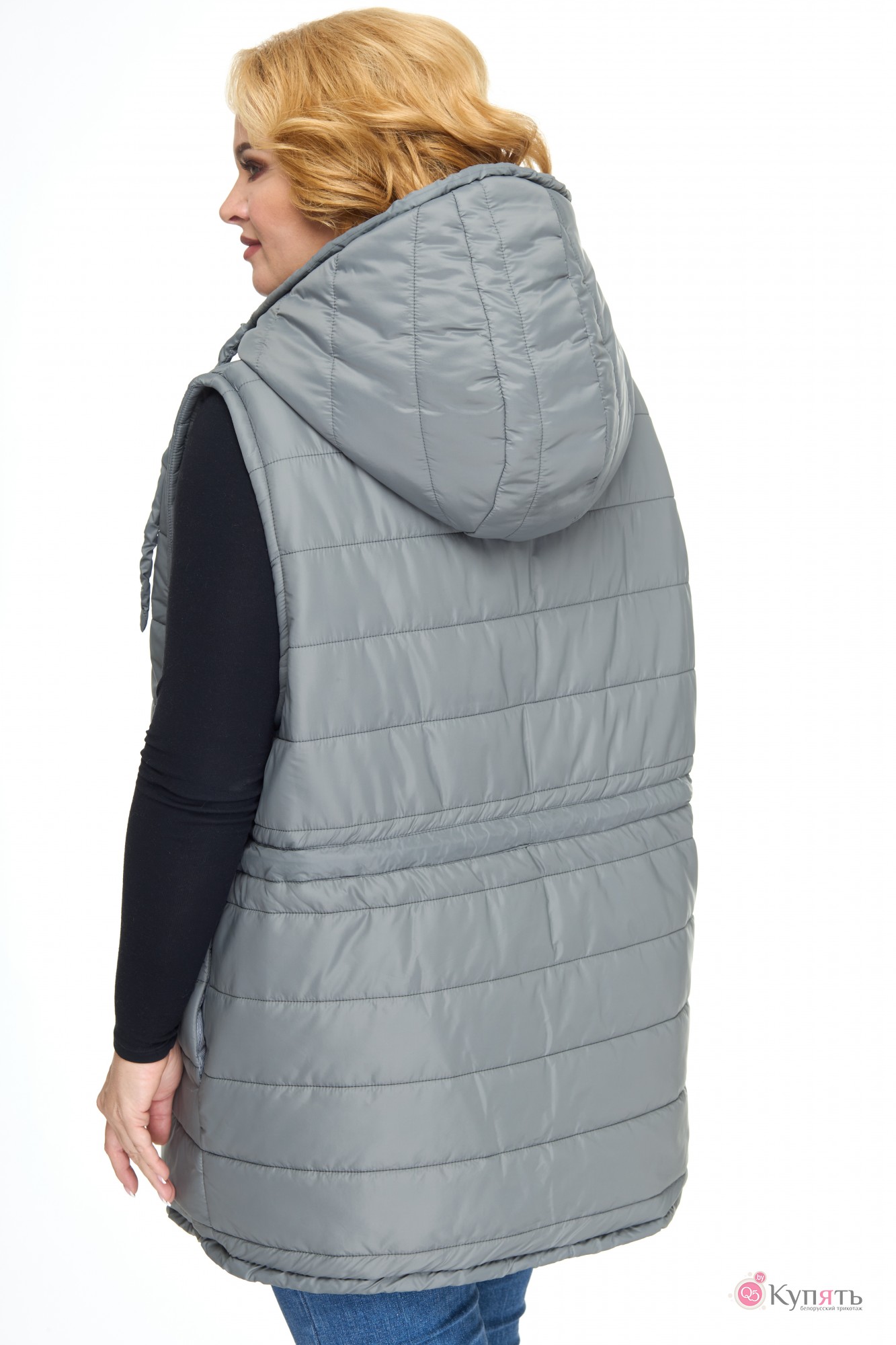 Прямой силуэт с завышенными прибавками по обхватам для удобной носки и комбинирования жилета с верхней одеждой.Объёмный капюшон,застёжка на разъемную молнию по всей длине.В области талии,по низу и в капюшоне шнурки,обтянутые тканью верха для фиксирования обхватов по вашему желанию.