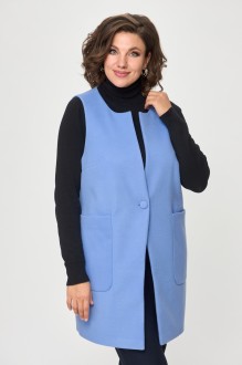 Жилет прямого силуэта с нагрудными вытачками. Мягкий кашемир в нежном голубом цвете и идеальный конструкторский замысел позволили идеально подчеркнуть фигуру в любом размере.