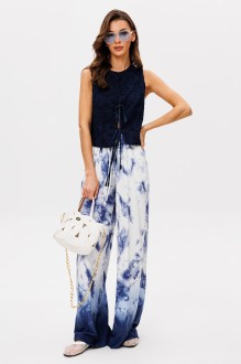 Жилет из ажурного шитья полуприлегающего силуэта без рукавов. Полочка с центральной застежкой на завязки и крючок, с 2-мя вертикальными вытачками от низа для лучшего прилегания изделия. Спинка с вертикальной вытачкой от низа и центральным швом. Жилет на подкладке из хлопка.
