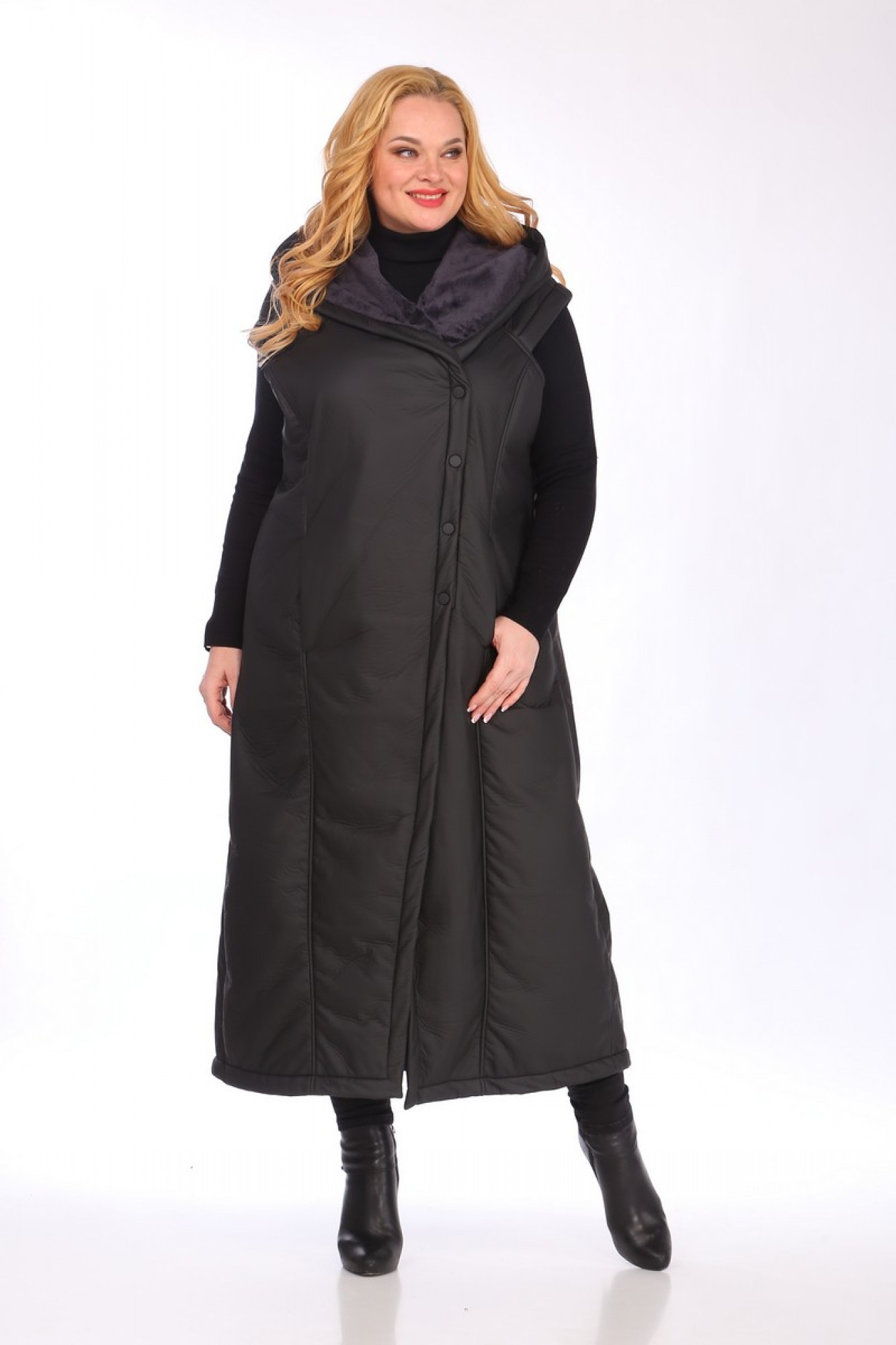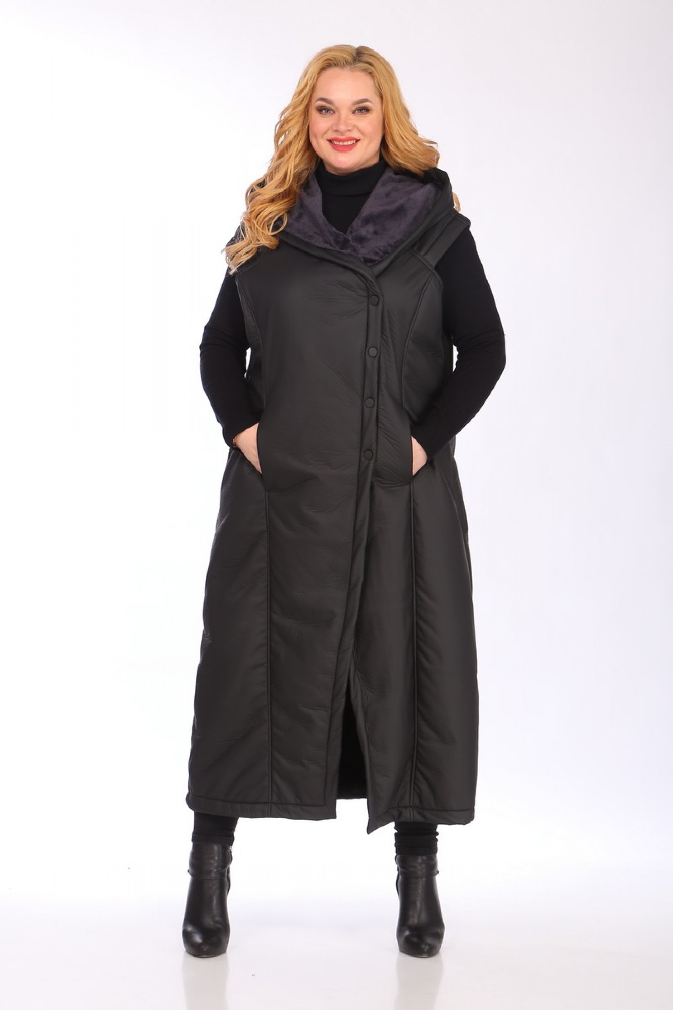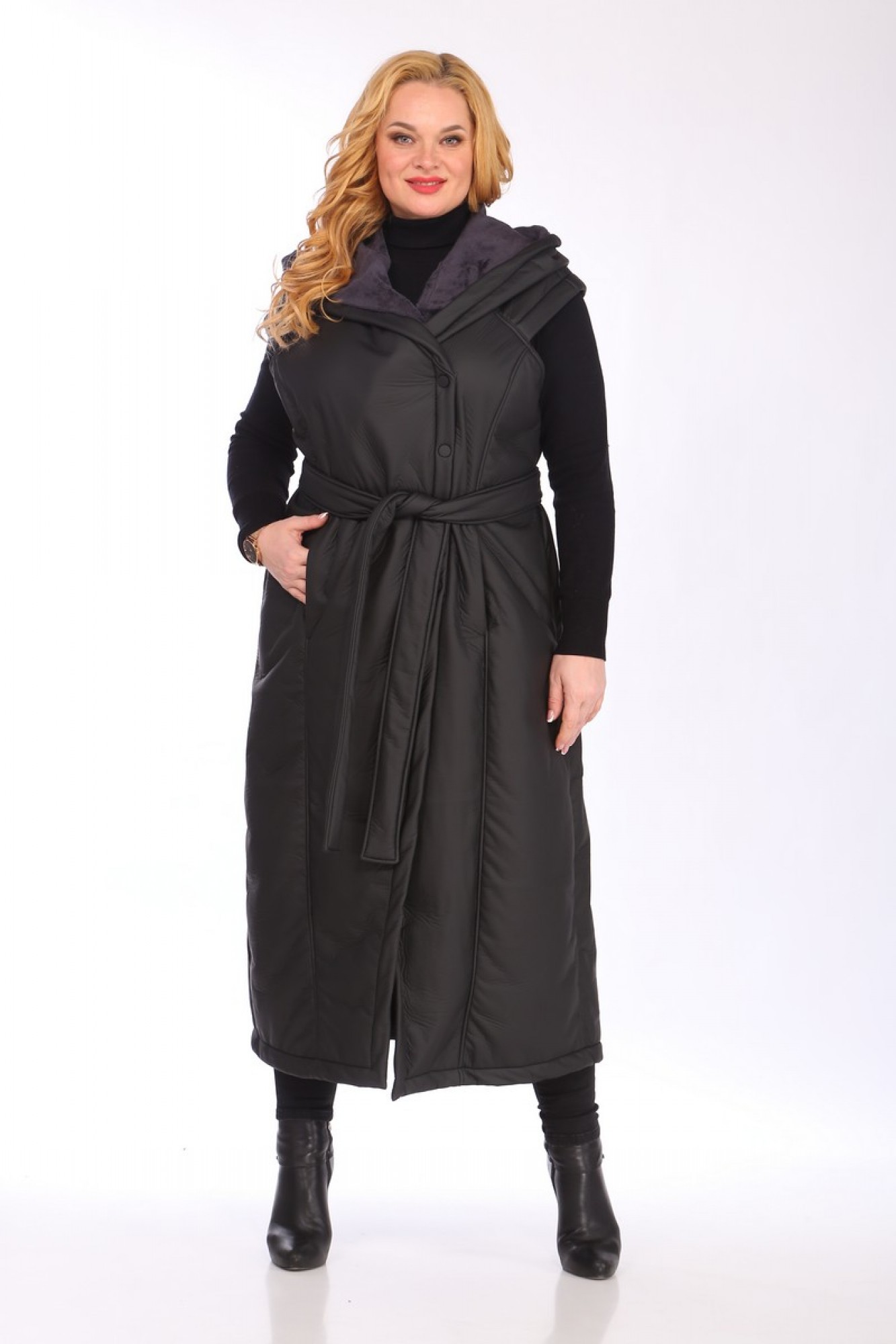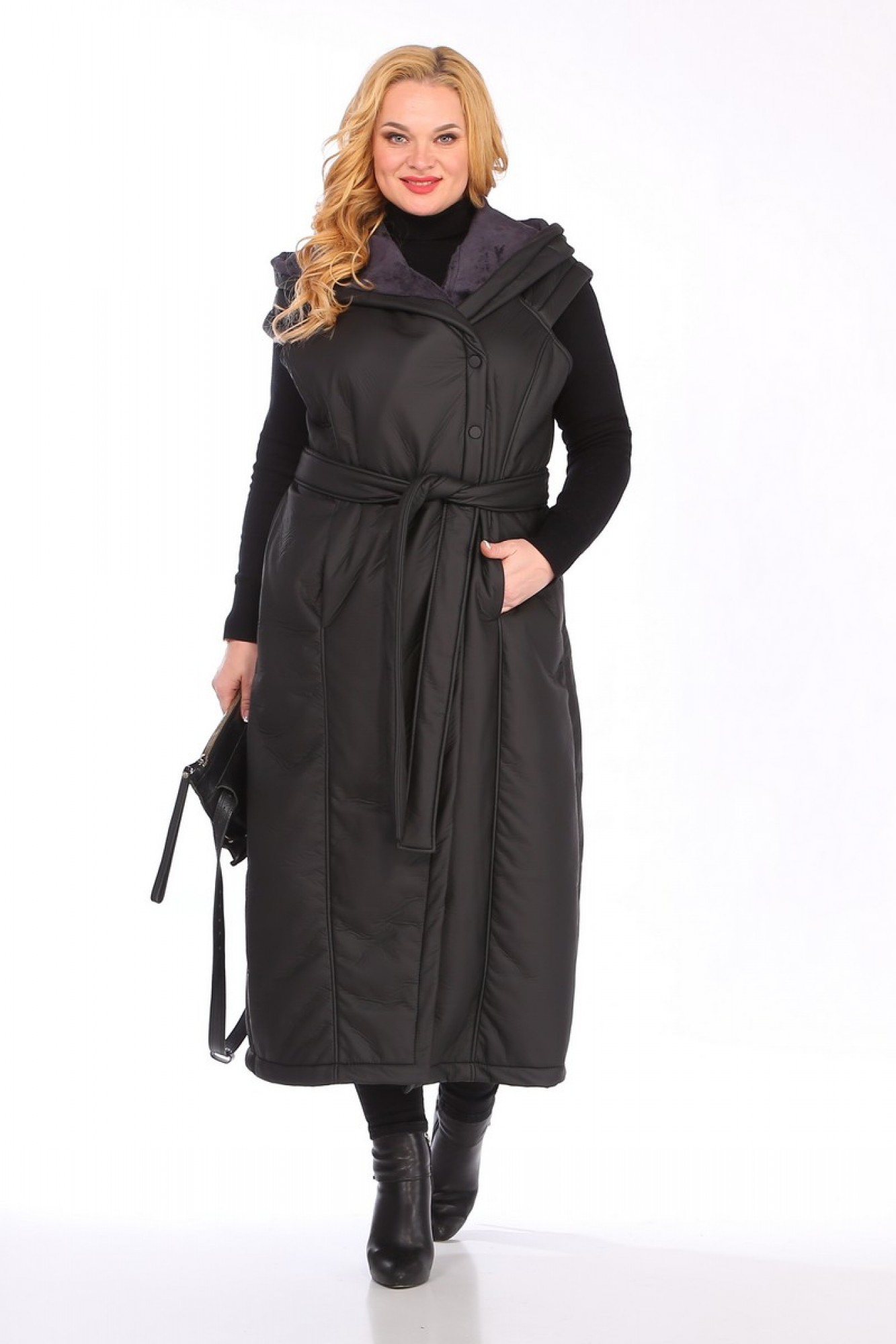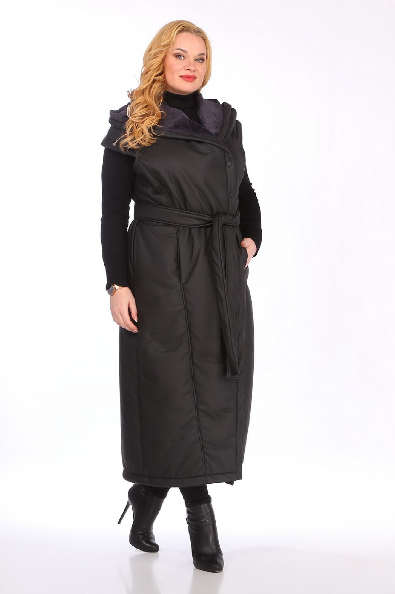 Жилет женский из плащевой ткани с меховой изнанкой. Полочка с рельефами, в которых расположены внутренние функциональные карманы. Застежка центральная на косую на 4 кнопки. Капюшон втачной. Спинка с центральным швом. В центральном шве по спинке и на рукавах функциональные шлицы на кнопках. В комплекте пояс из основной ткани. Выполнен из мягкой непромокаемой ткани. Все кнопки на изделии металлические. Жилет без утеплителя и подкладки, изнанка - экомех. По температурному режиму подходит для весны, осени и еврозимы (до небольшого минуса). Примечание: Перед первой примеркой рекомендуется пройти изнанку (мех) изделия липким роликом для чистки одежды.