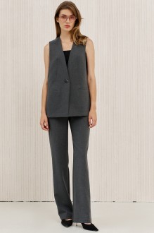 Жилет женский удлиненный прямого силуэта на подкладке. По переду нагрудная вытачка из подреза, прорезные функциональные карманы с листочкой. Спинка с отрезным бочком и двумя шлицами и плечевыми выточками. Горловина " V- образным" вырезом. Особенностью жилета являются сильно углубленные проймы.