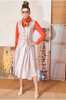 Классический женский жилет из костюмно-плательной ткани, полуприлегающего силуэта, на подкладке. Горловина с V- образным вырезом. Перед с нагрудными вытачками и карманами-обманками с листочкой. Застежка по центру на петли и пуговицы. На спинке с хлястиками, пришитыми в шов стачивания талиевых вытачек. Можно скомбинировать с прямой арт. 2229 или широкой арт. 2260 юбками.