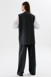Жилет двубортный прямого кроя объёма оверсайз. Застёжка фигурная на петли и пуговицы. Карманы - листочки.