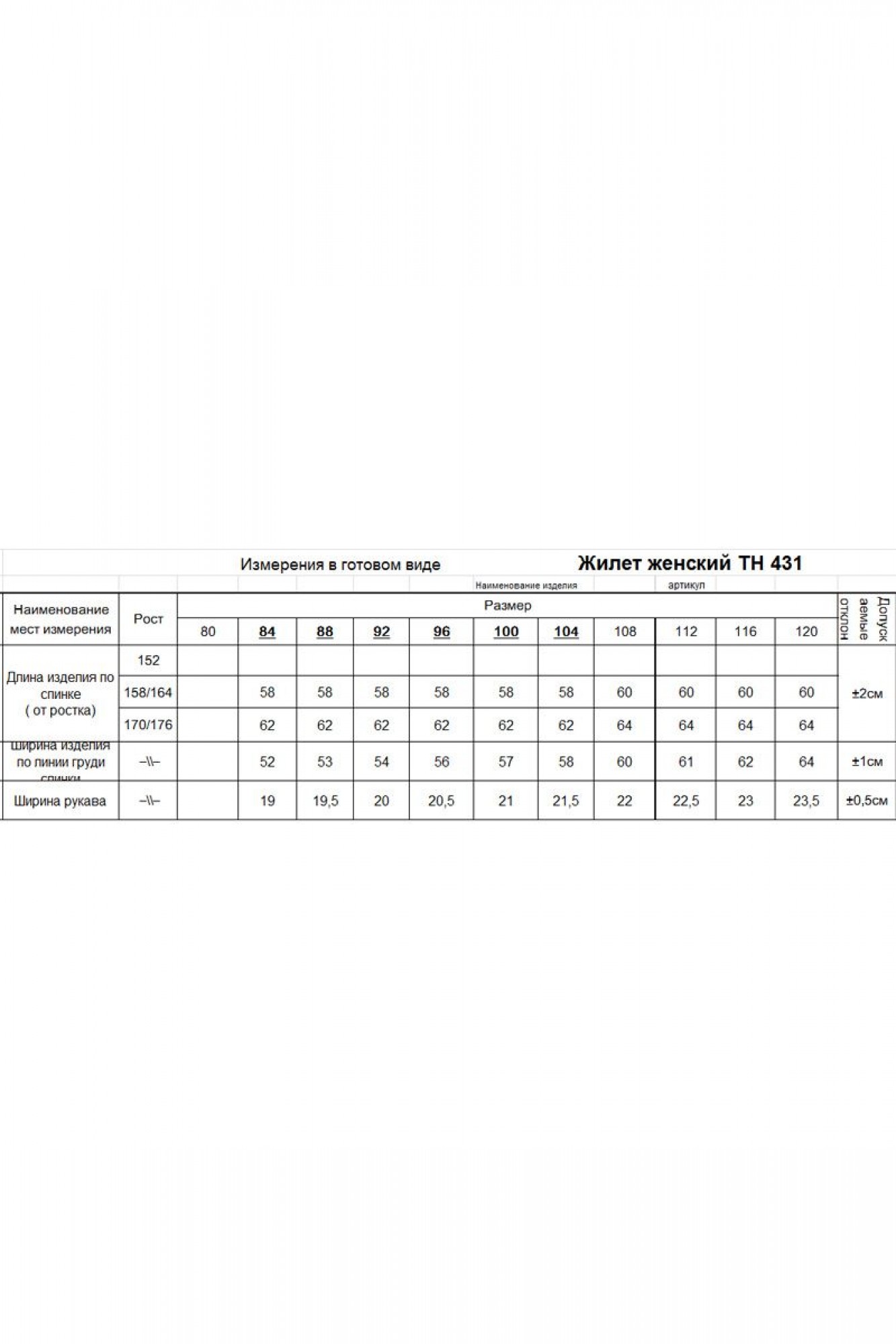 Таблица размеров