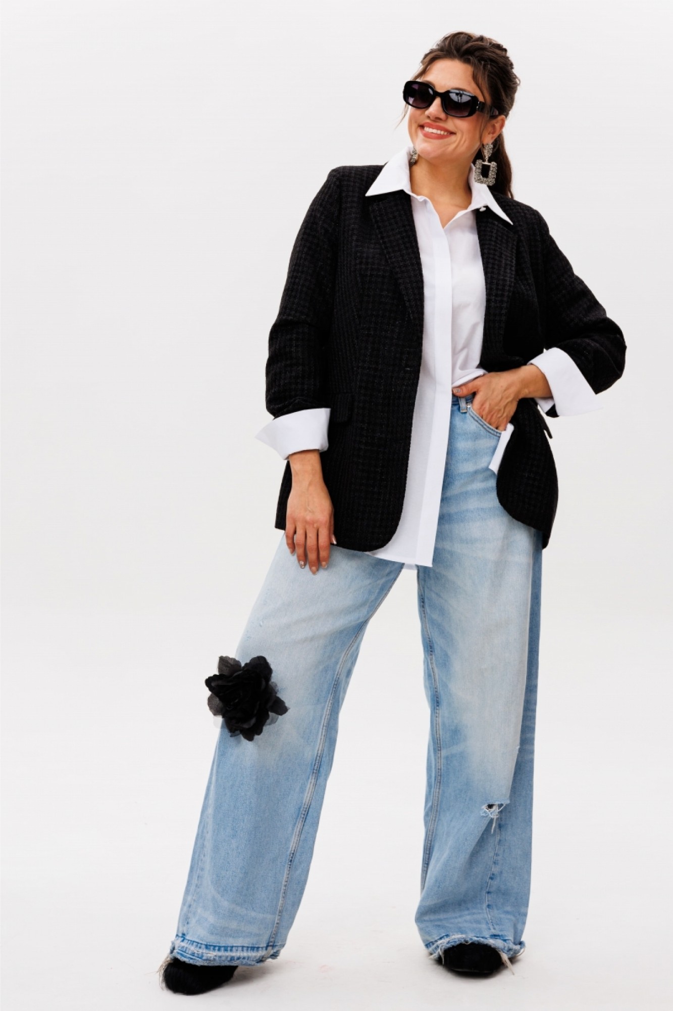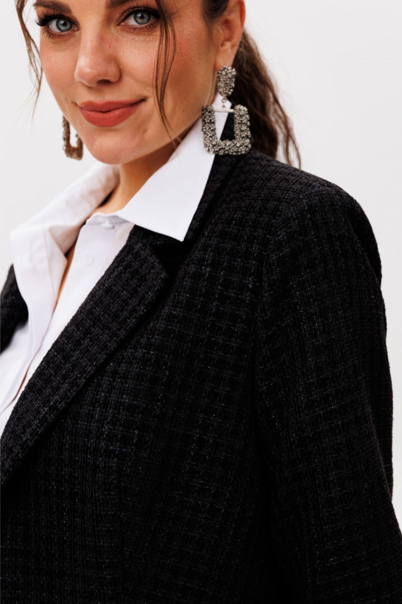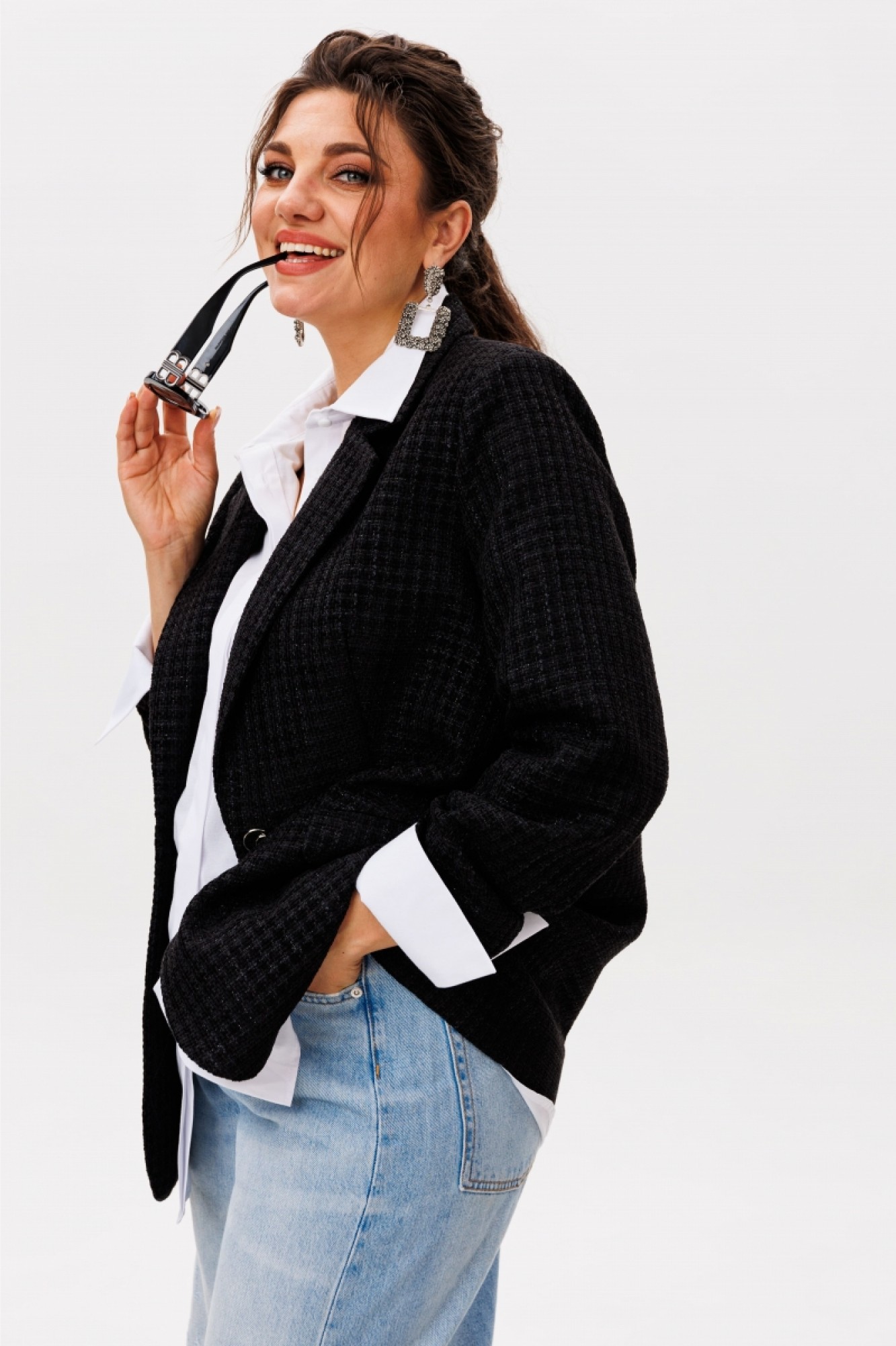 На модели в жакете цвета «черный жемчуг» рубашка 1203.