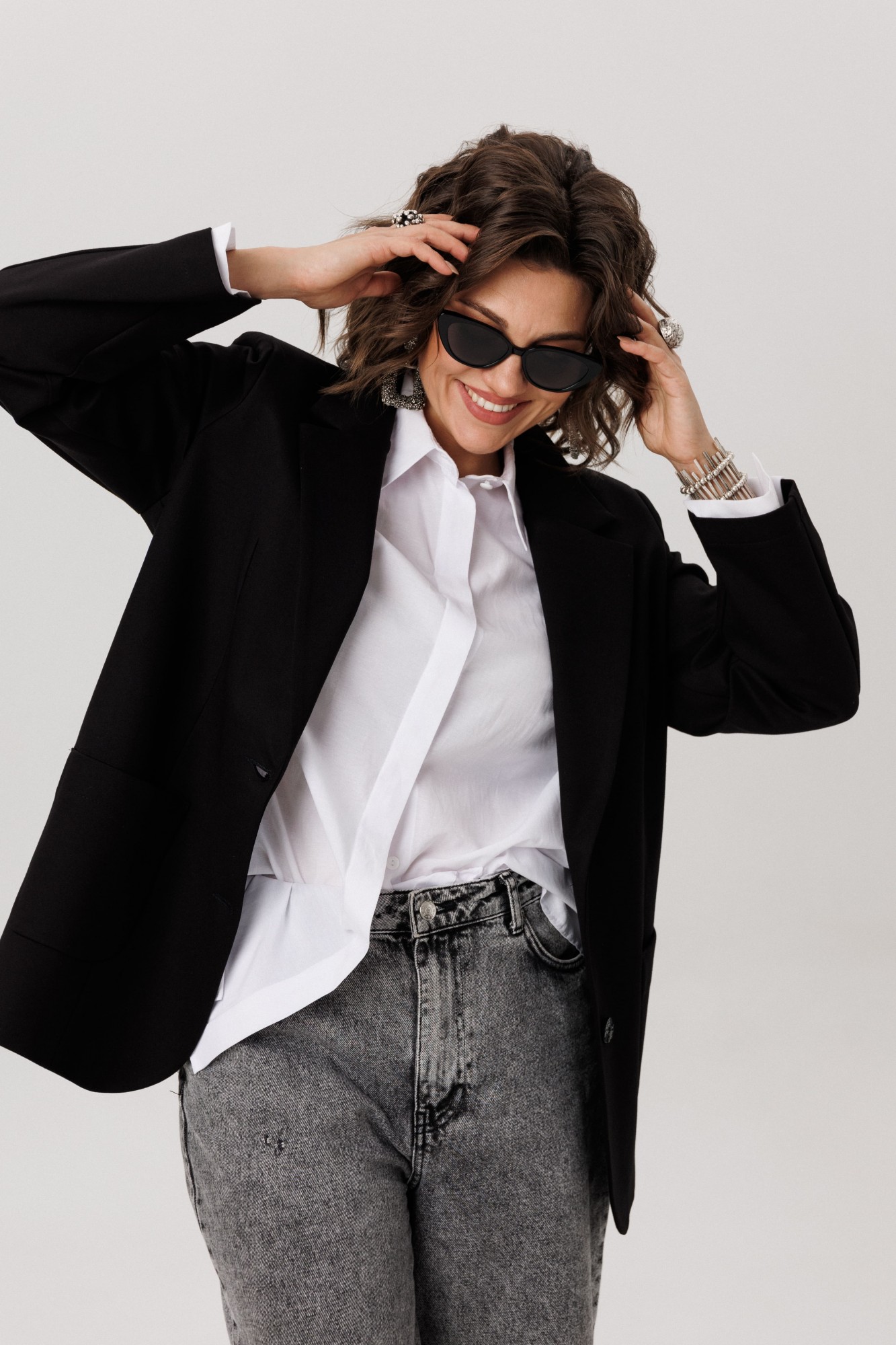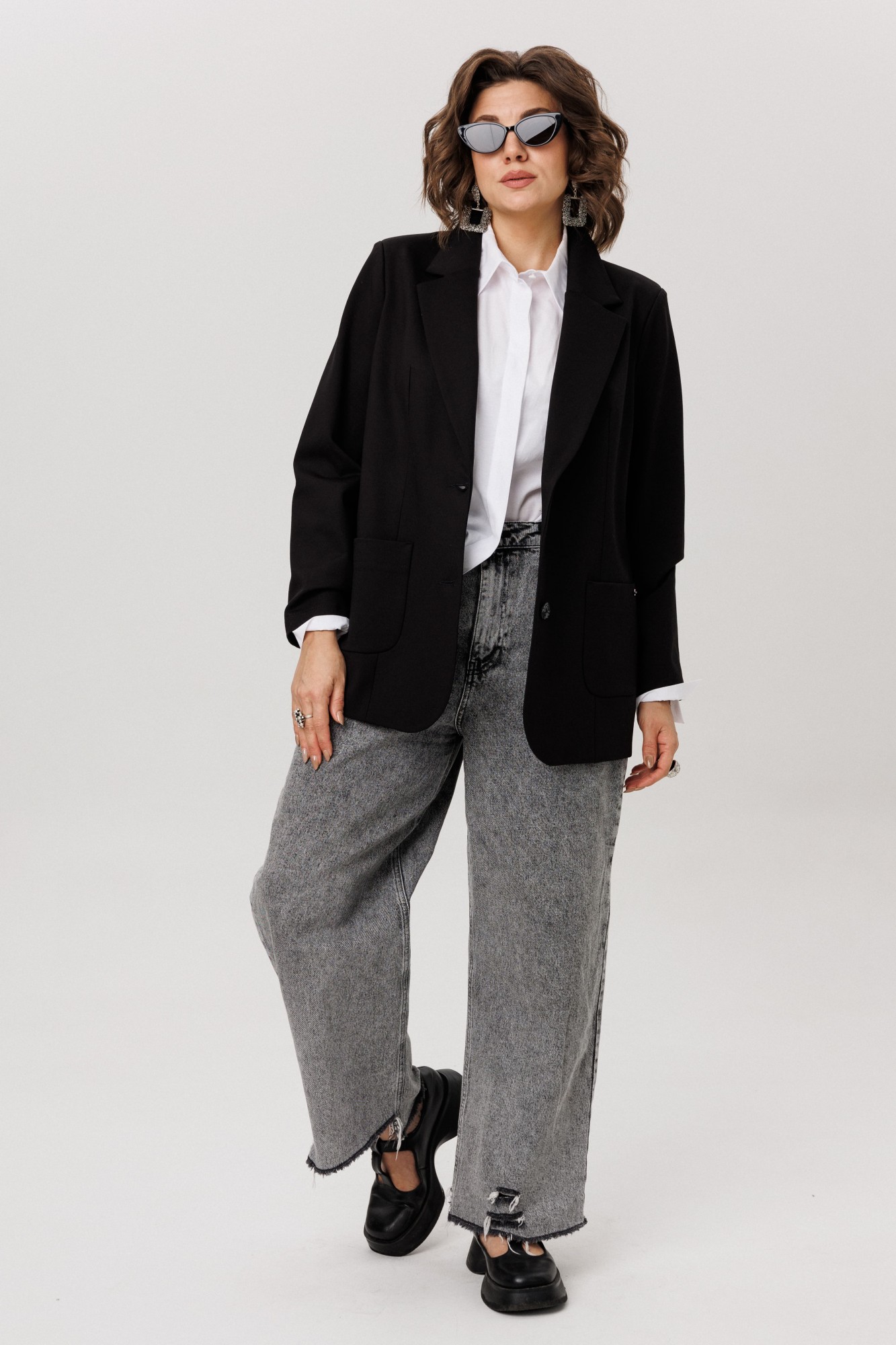 Длинный втачной рукав и два накладных кармана делают модель не только стильной, но и практичной. Жакет легко впишется в повседневный гардероб — он будет одинаково хорошо смотреться с офисными брюками, джинсами или свободными брюками, добавляя образу лёгкую небрежность.
