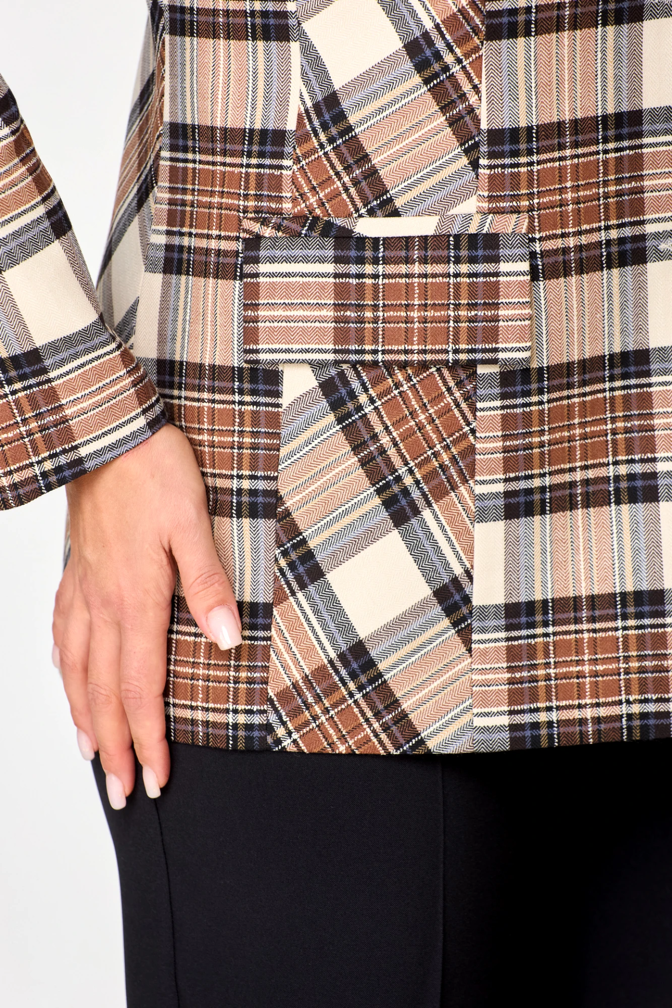 Жакет (пиджак) БелЭльСтиль 412 коричнево-бежевая клетка