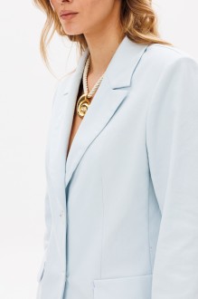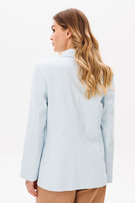 Жакет полуприлегающего силуэта из джинсовой хлопковой ткани с воротником пиджачного типа. Застежка однобортная на две пуговицы. Перед с таллиевой вытачкой, рельефом и декоративным клапаном. Спинка с рельефами из проймы и средним швом. Рукав втачной двухшовный.