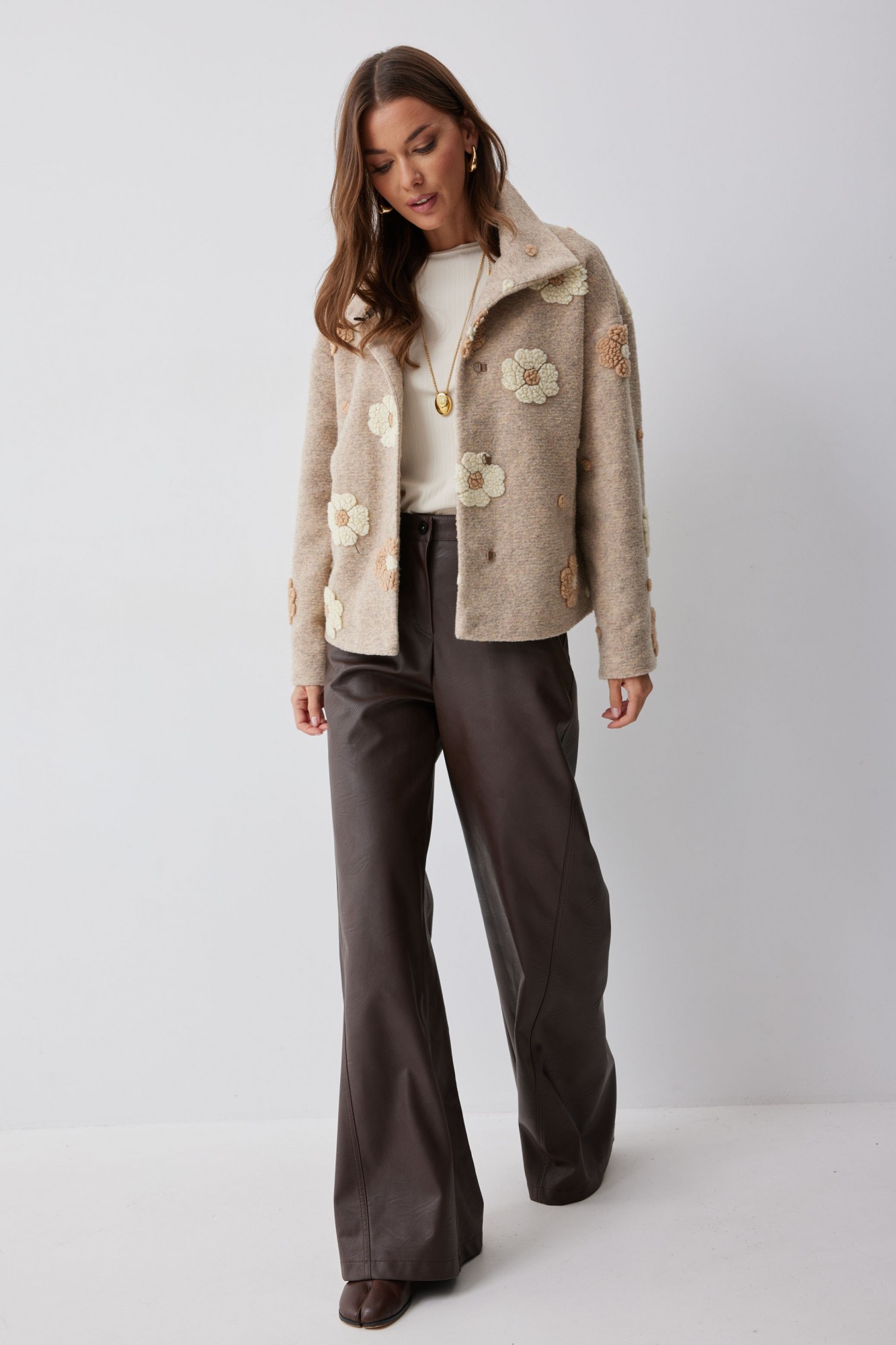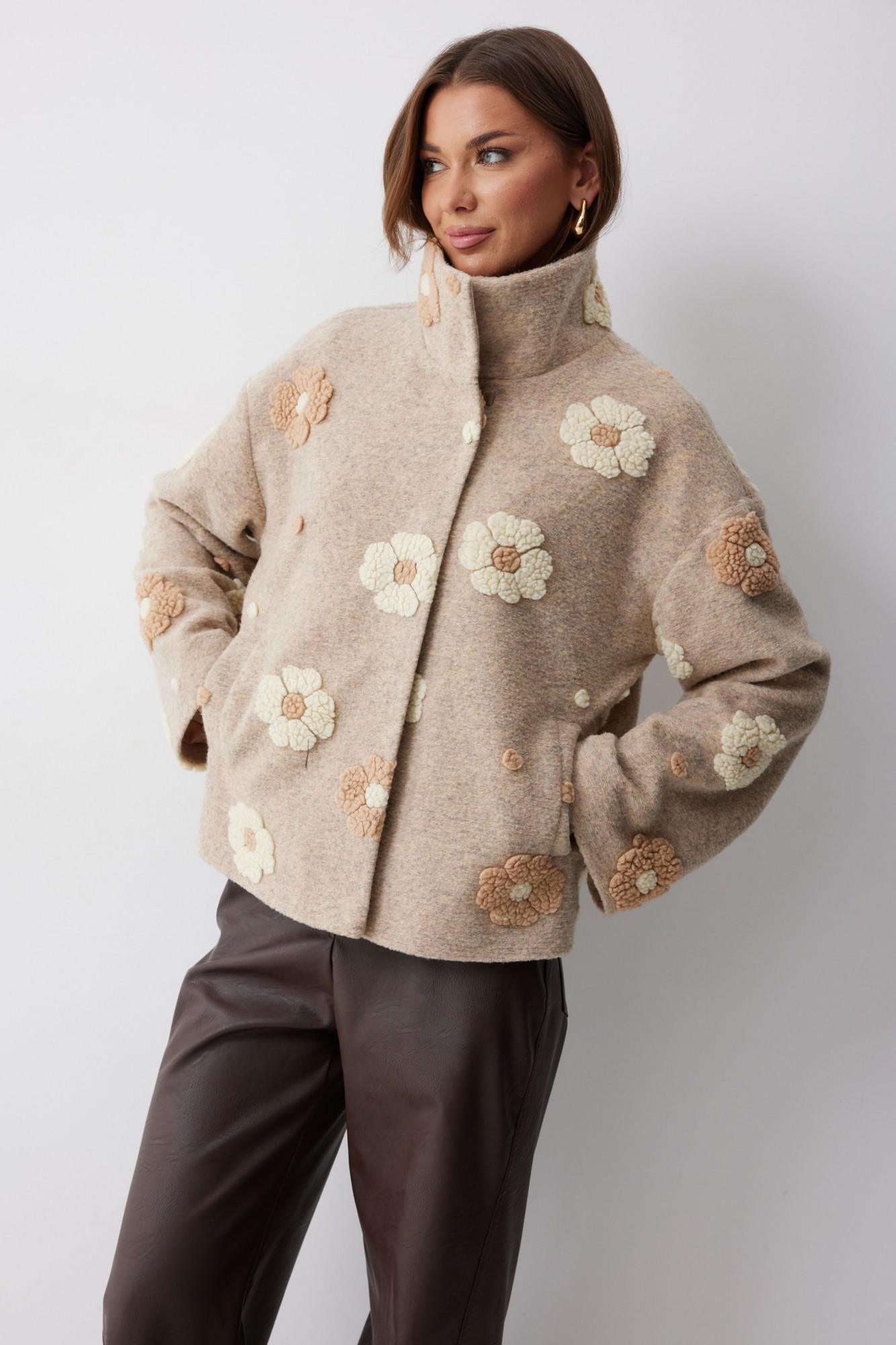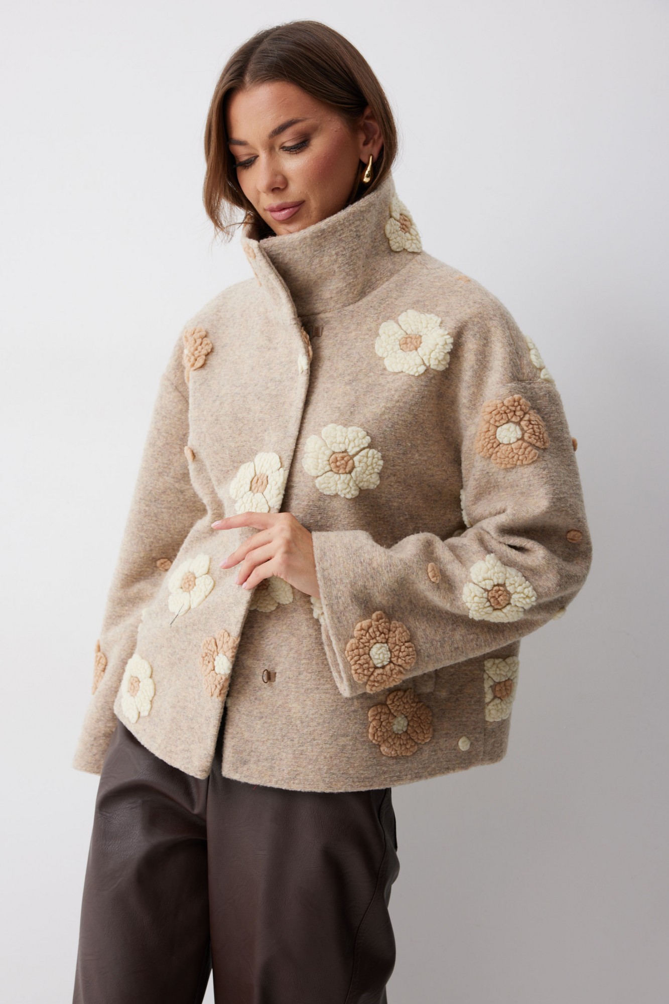 Жакет (пиджак) Люше 4245 бежевый, цветы