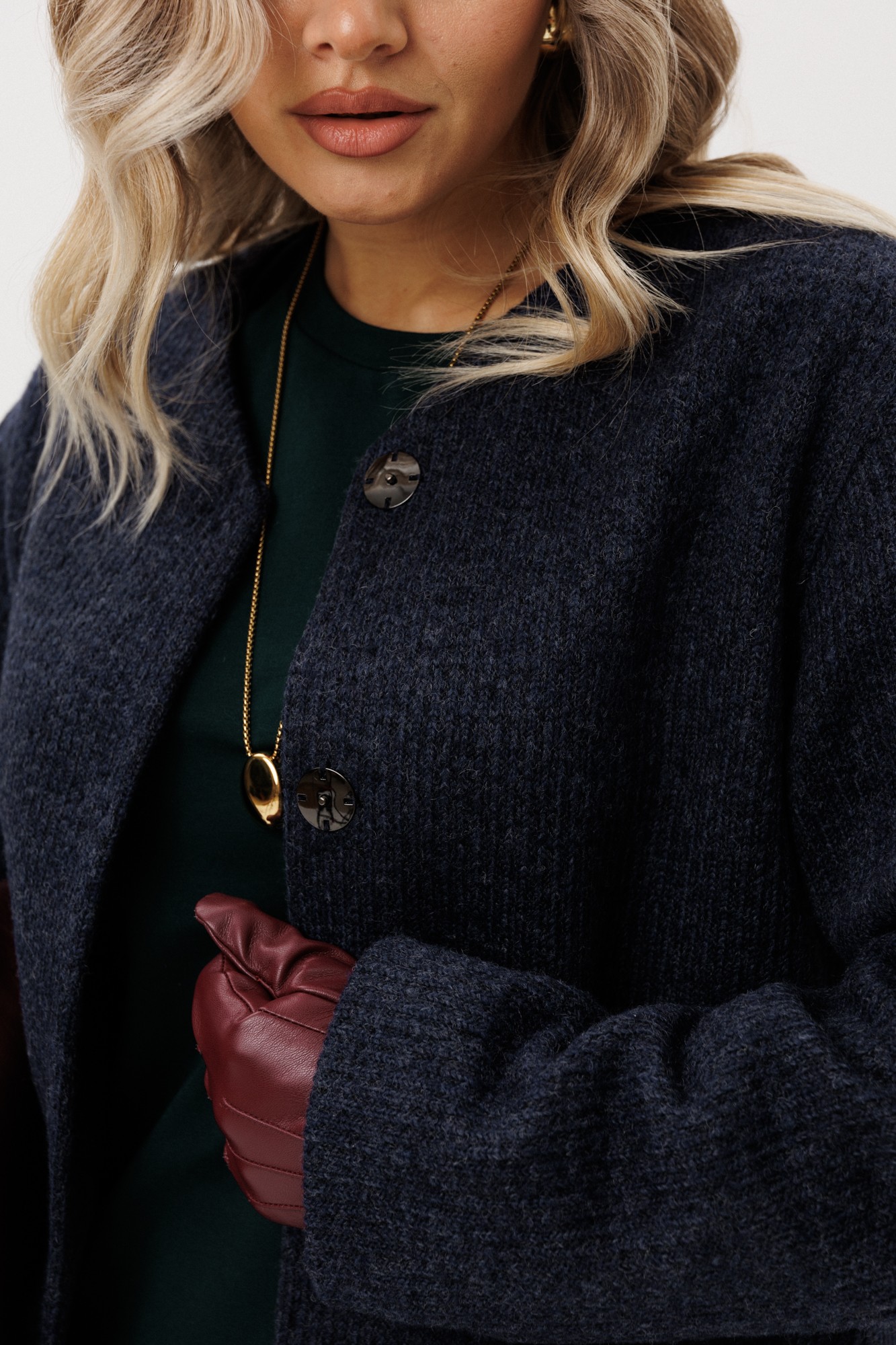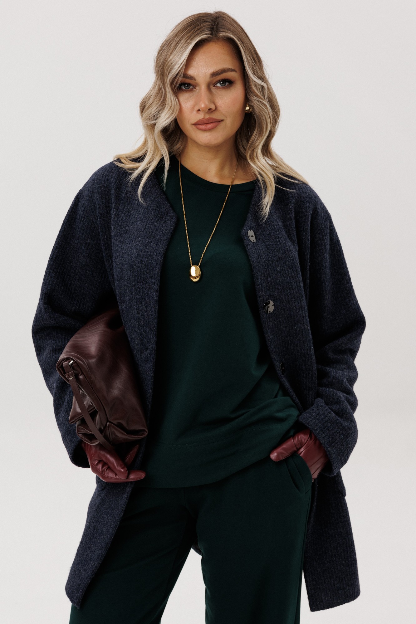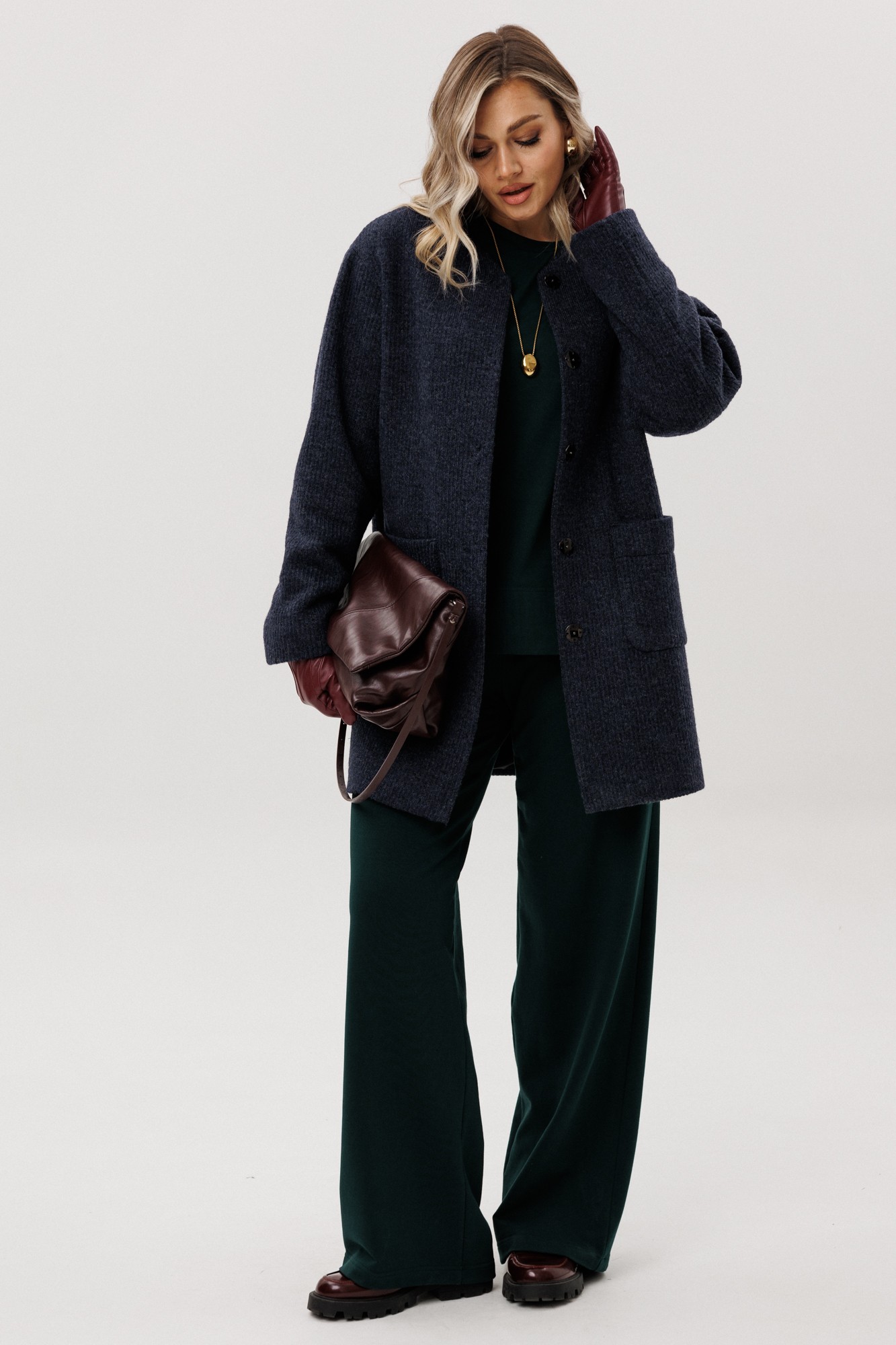 Жакет прямого силуэта с потайной застежкой на пришивные кнопки, без воротника. На полочке накладные карманы. Рукав втачной с заниженной проймой. Полностью на подкладке.