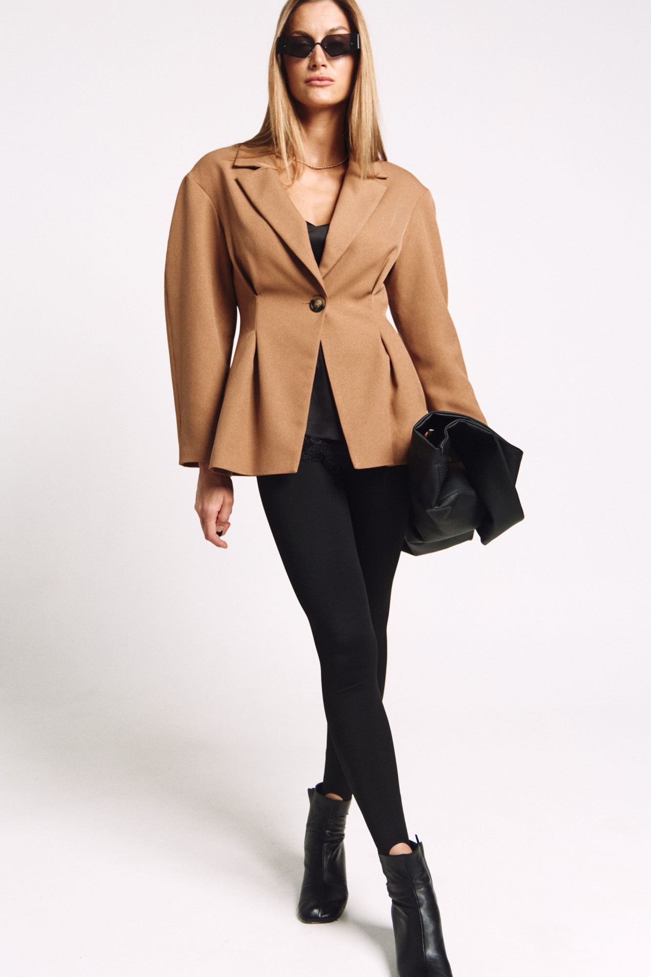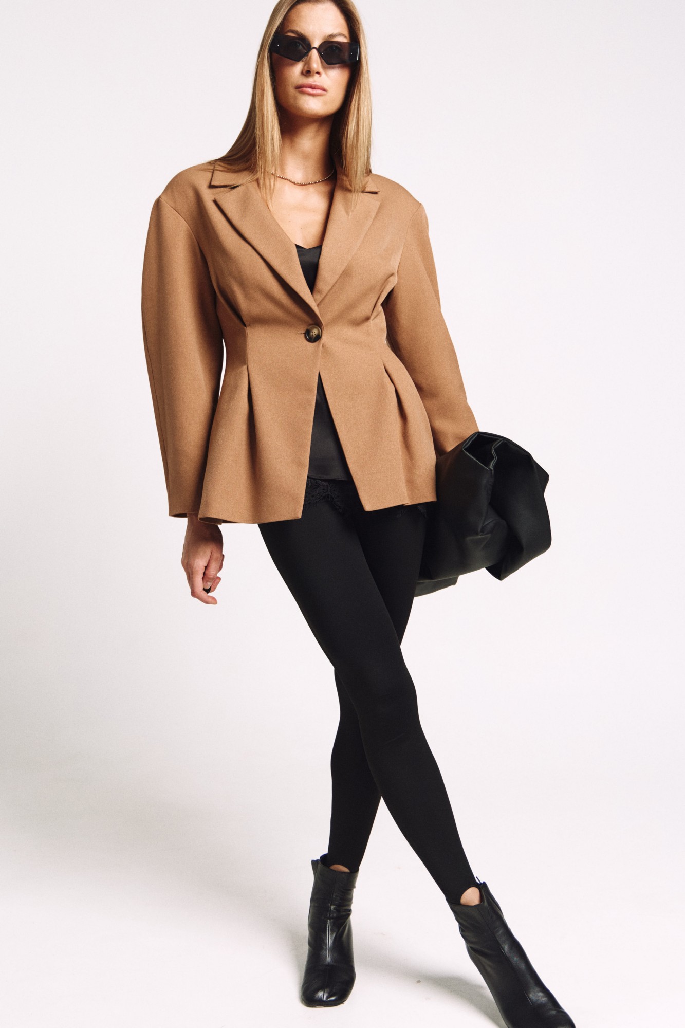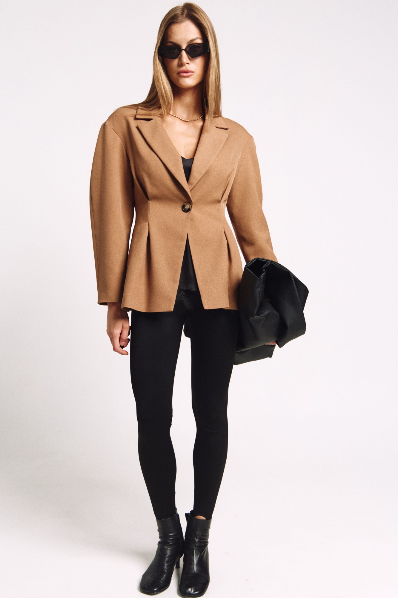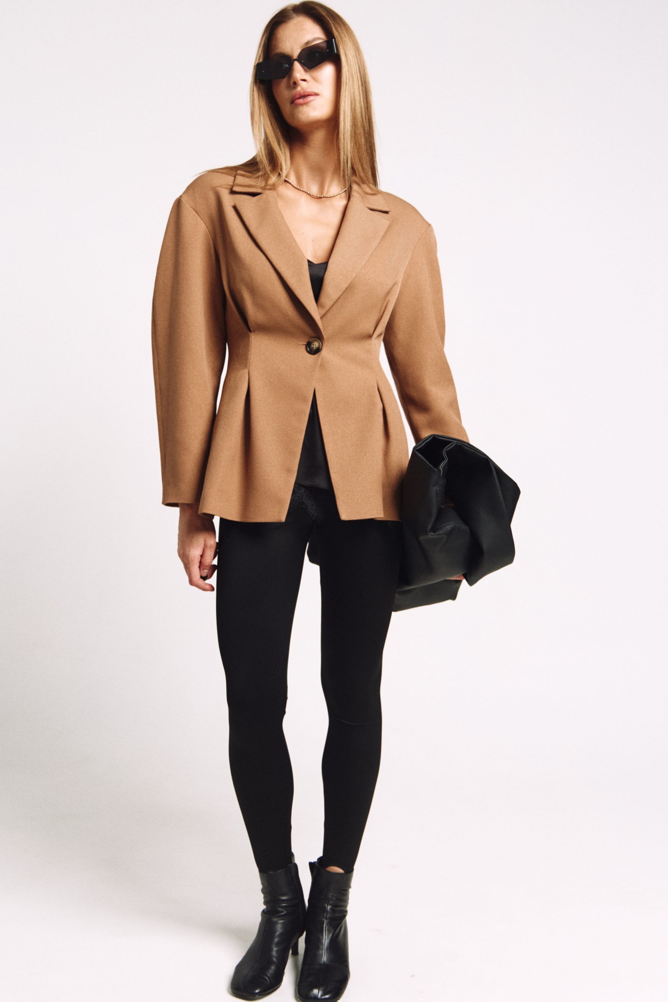 Приталенный жакет актуального силуэта, с расширенной линией плеча.