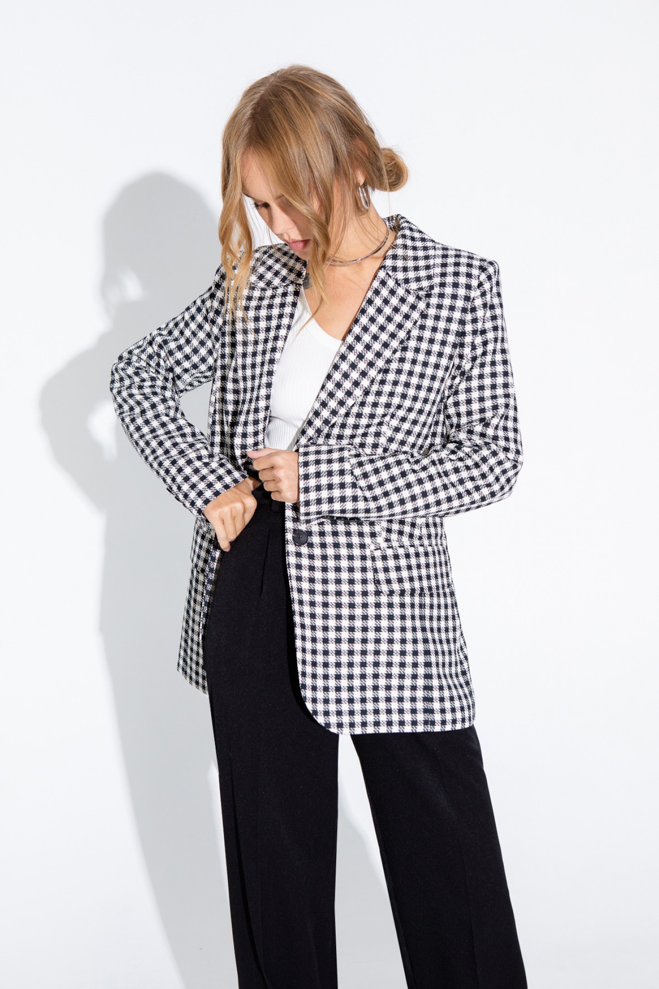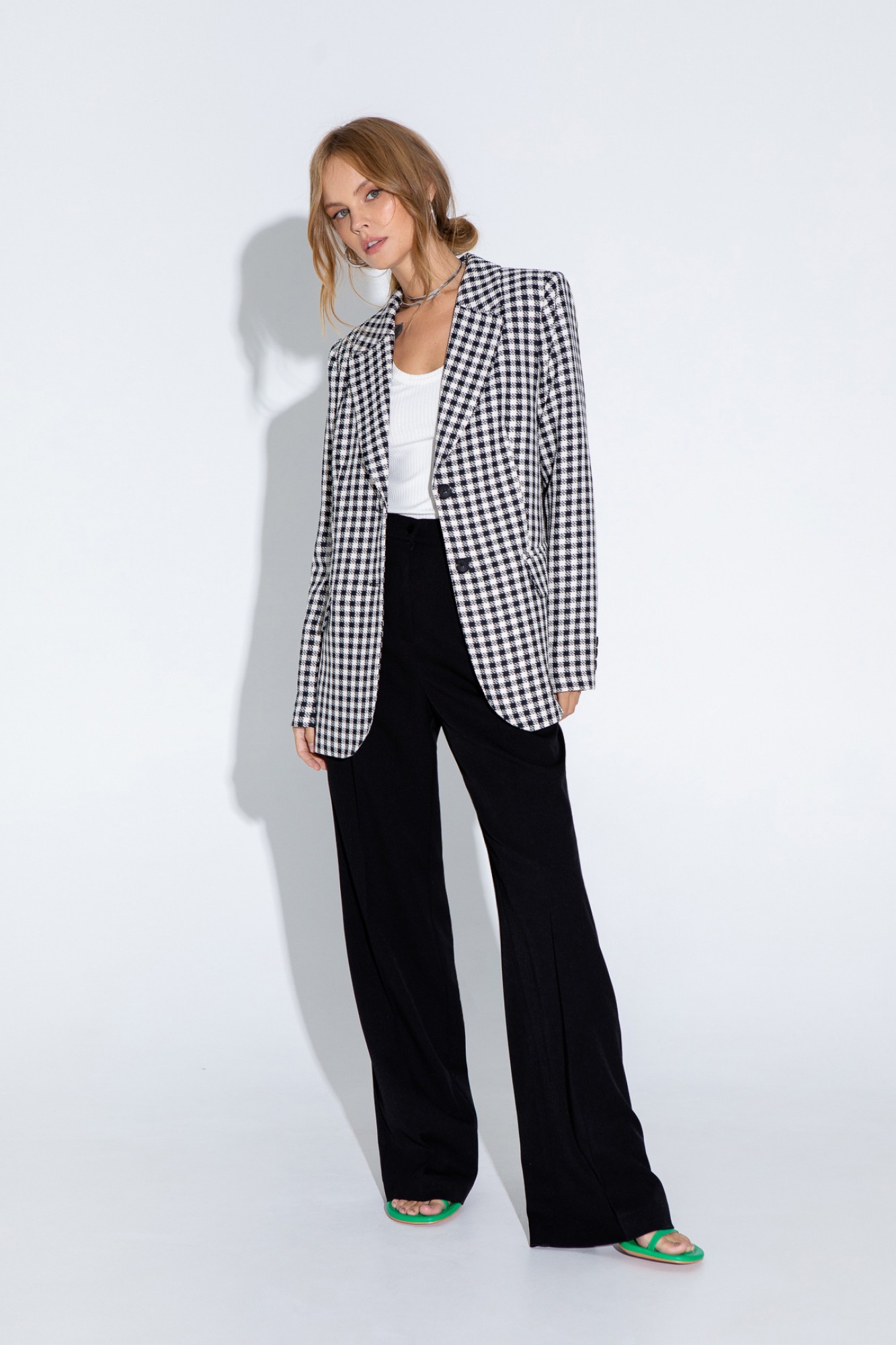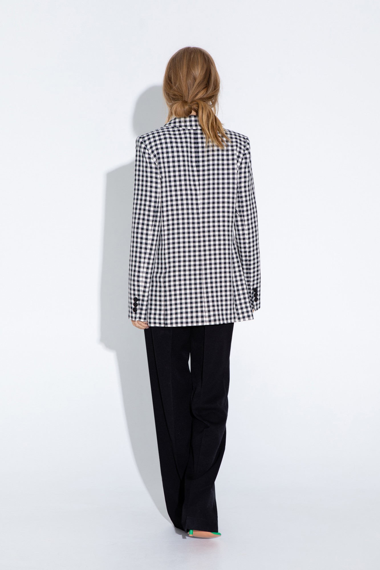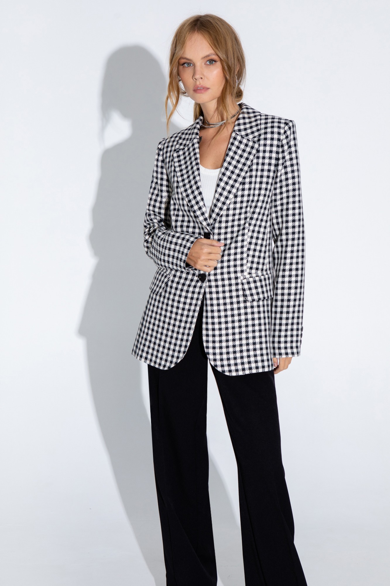 Детали: полуприлегающий силуэт, талиевые вытачки, пиджачный воротник, застежка на две петли и пуговицы, функциональные карманы, рукава и спинка со шлицами, жакет на подкладке из 100% вискозы