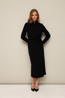 Стильный жакет полуприлегающего силуэта, выполнен из полушерсти. Застежка центральная на декоративные крючки и потайные кнопки. Воротник пиджачного типа с отложными лацканами. Спереди обработаны накладные карманы, в области груди подрезы с нагрудными вытачками. Спинка с рельефами и средним швом переходящим в шлицу. Рукава втачные двухшовные. Изделие на подкладке.