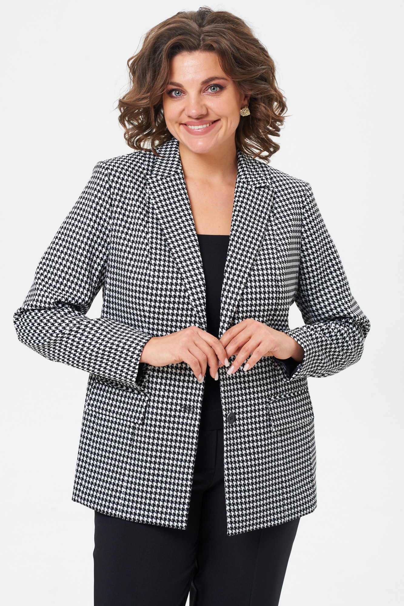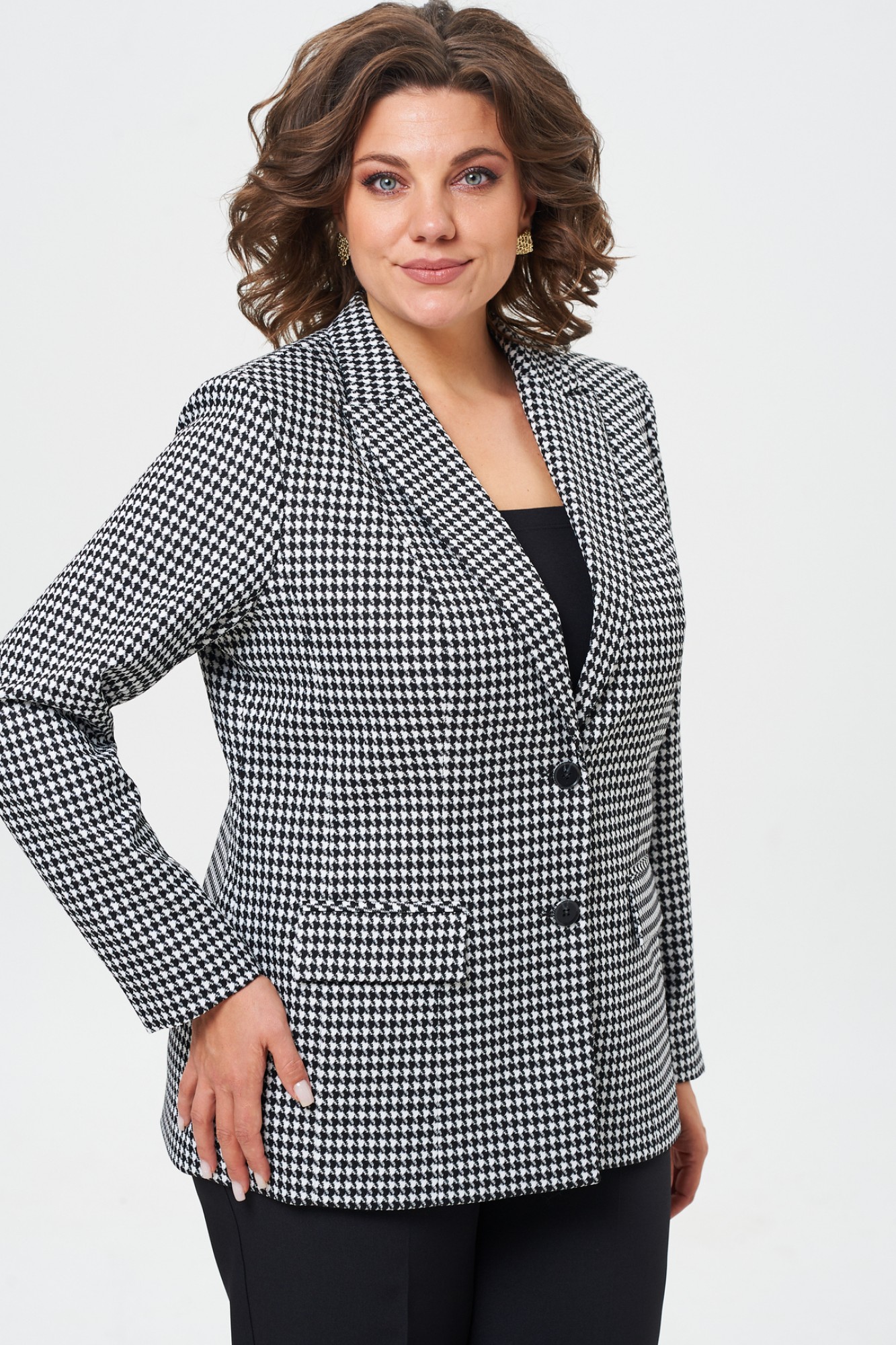 Жакет (пиджак) БелЭльСтиль 412 черная гусиная лапка