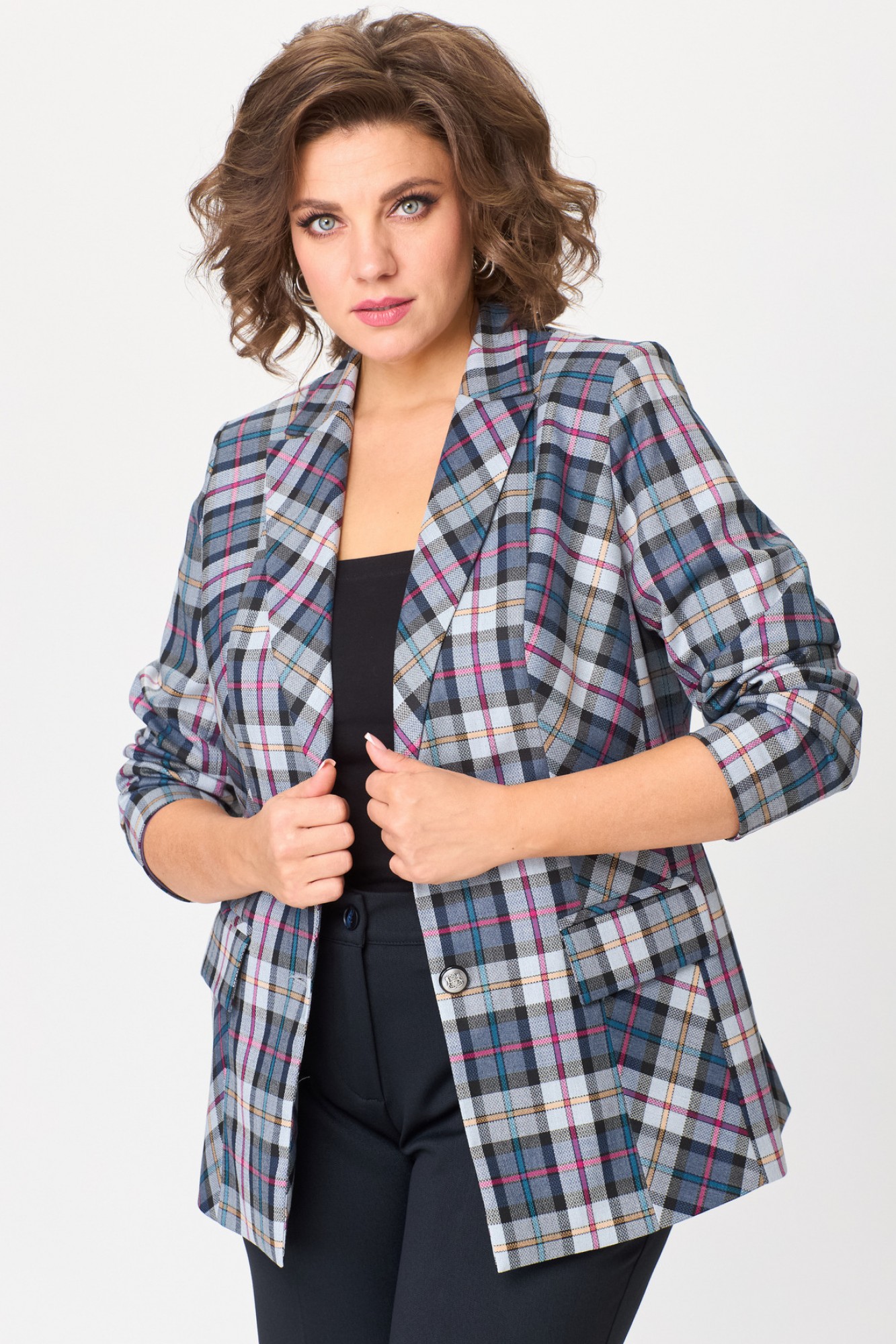 Жакет (пиджак) БелЭльСтиль 412 серая клетка