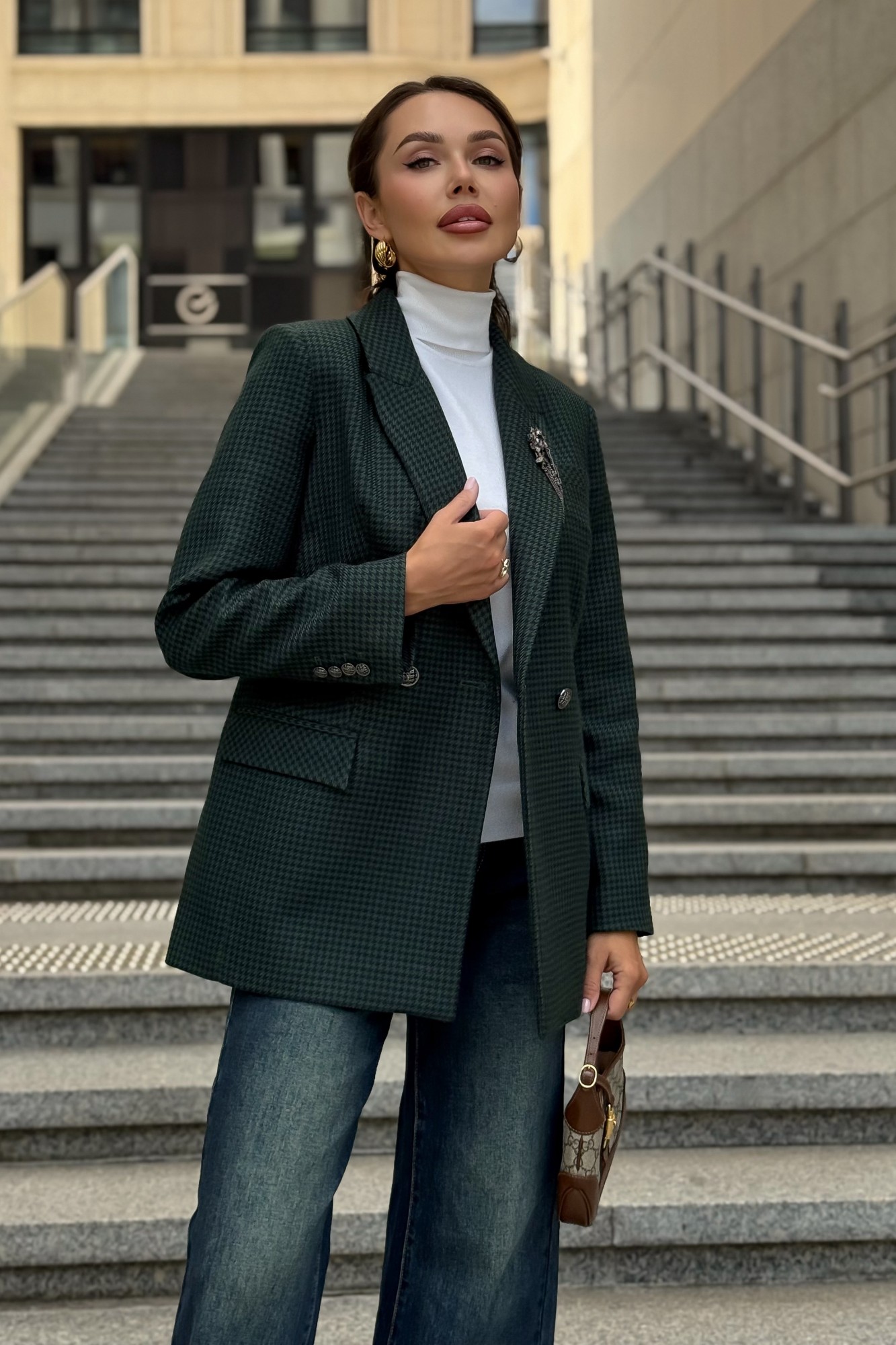 Длина жакета по среднему шву спинки – 74,5см (±2,0 см), Ширина на уровне глубины проймы – 58,0 см (±1,0 см), Ширина на уровне линии талии – 57,0см (±1,0 см), Ширина на уровне линии бедер – 63,0 см (±1,0 см), Длина рукава – 61,0 см (±1,0 см), Ширина рукава вверху – 20,5 см (±1,0 см), Ширина рукава внизу - 14,5 см (±0,5 см), Длина плеча – 12,2 см (±0,5 см).