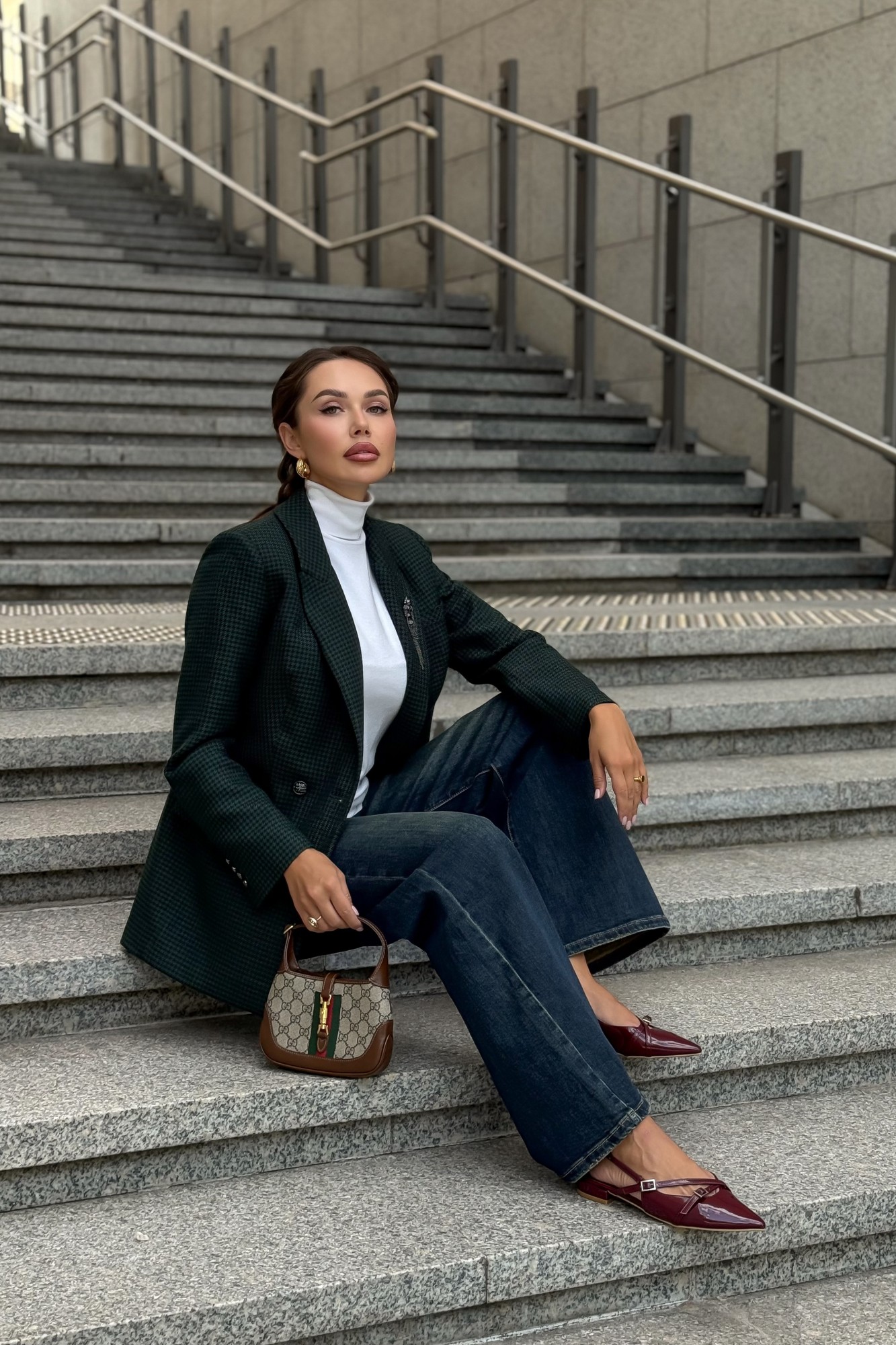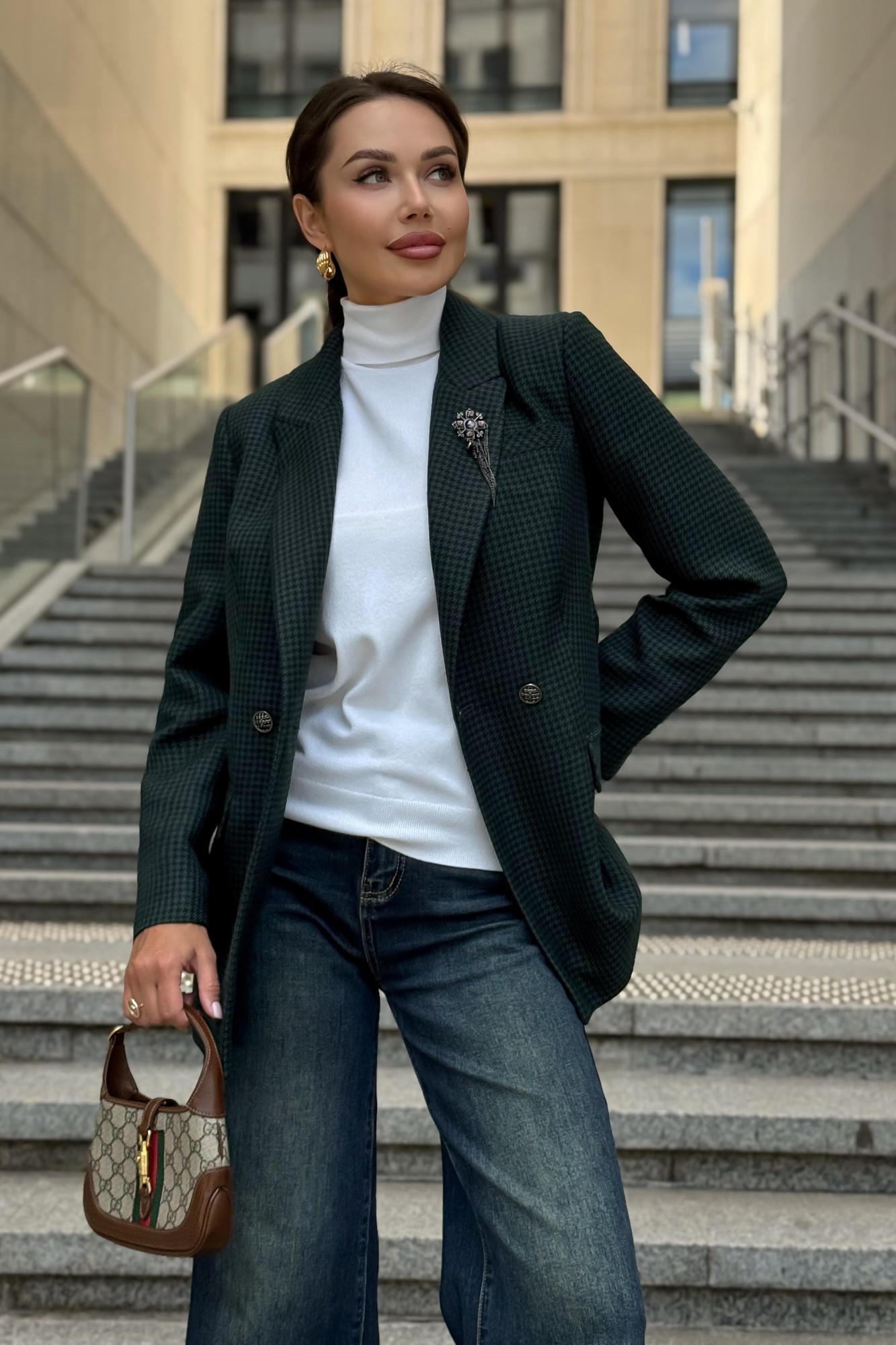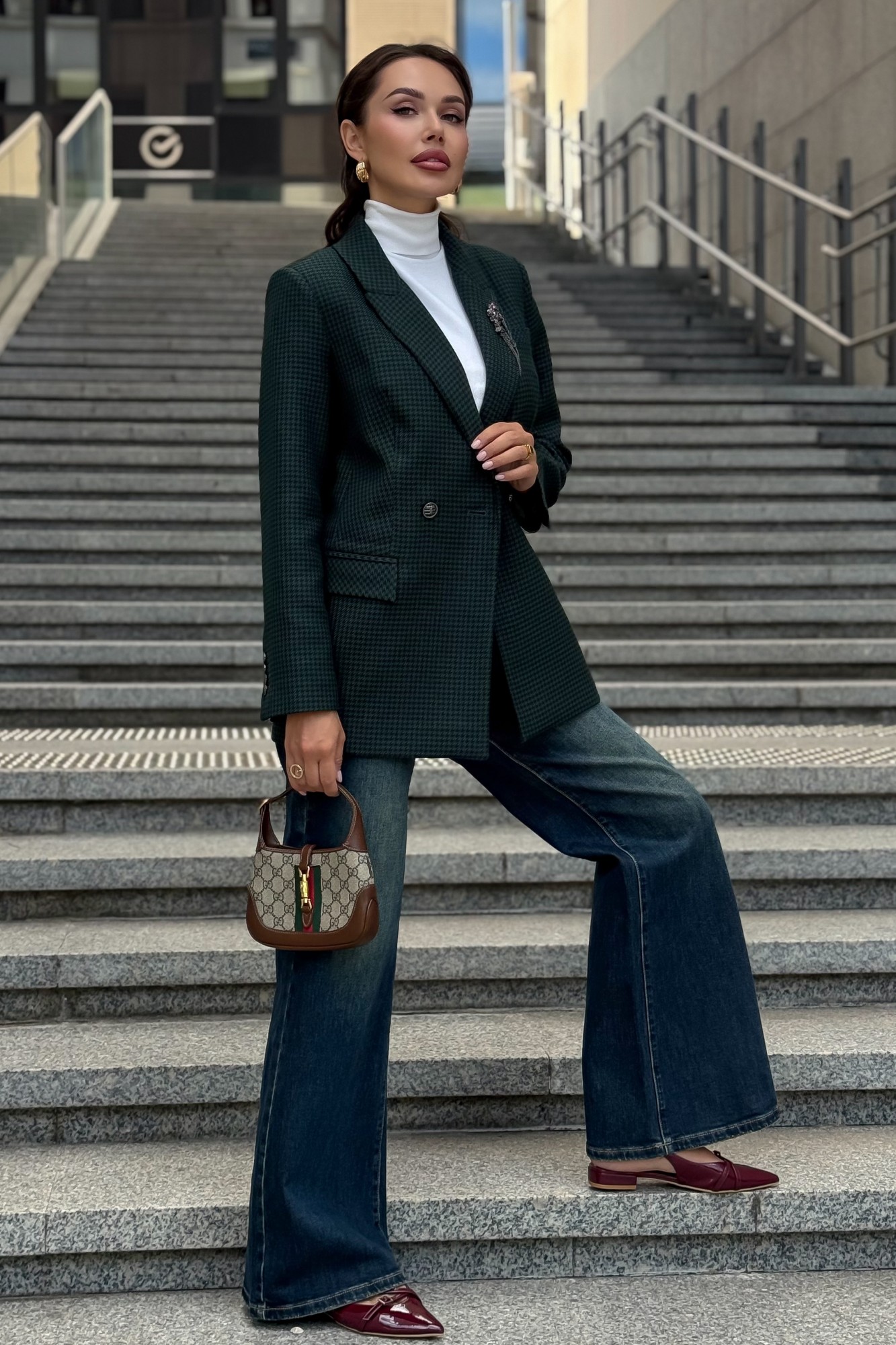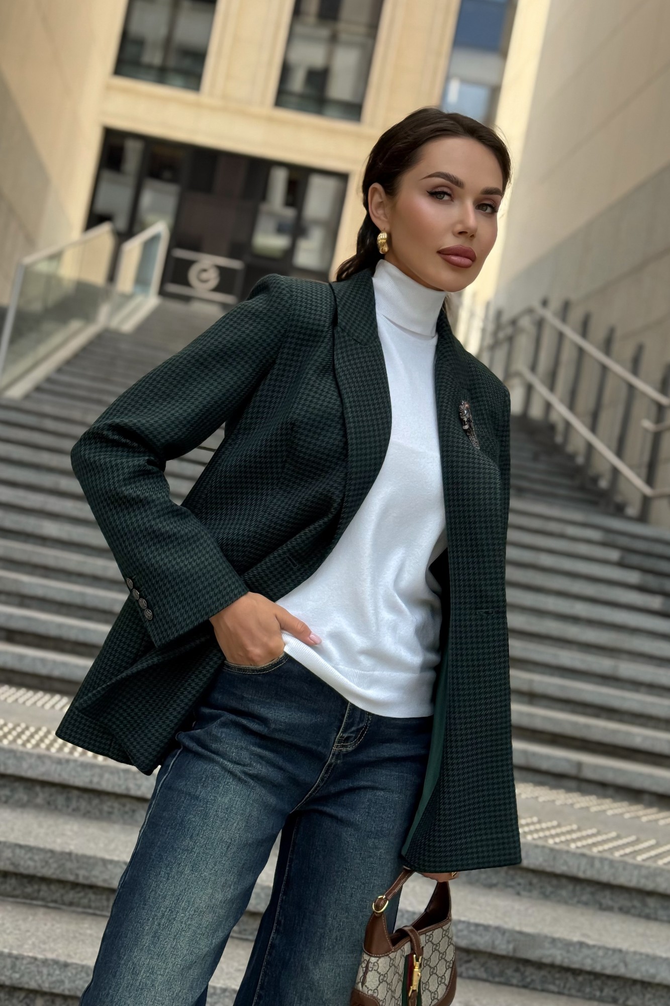 Длина жакета по среднему шву спинки – 72,0см (±2,0 см), Ширина на уровне глубины проймы – 52,0 см (±1,0 см), Ширина на уровне линии талии – 50,0см (±1,0 см), Ширина на уровне линии бедер – 55,0 см (±1,0 см), Длина рукава – 61,0 см (±1,0 см), Ширина рукава вверху – 18,0 см (±1,0 см), Ширина рукава внизу - 14,0 см (±0,5 см), Длина плеча – 12,0 см (±0,5 см).