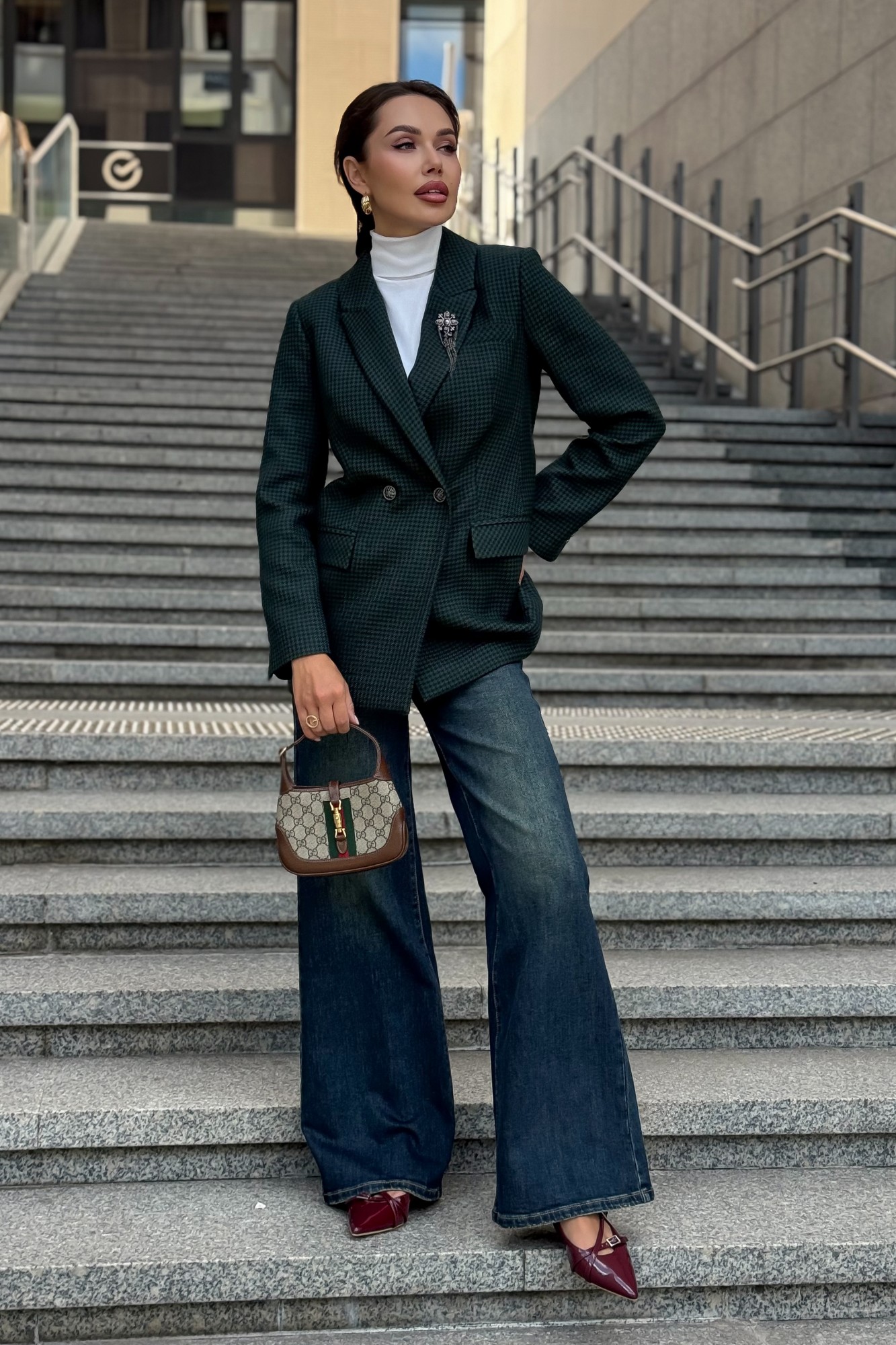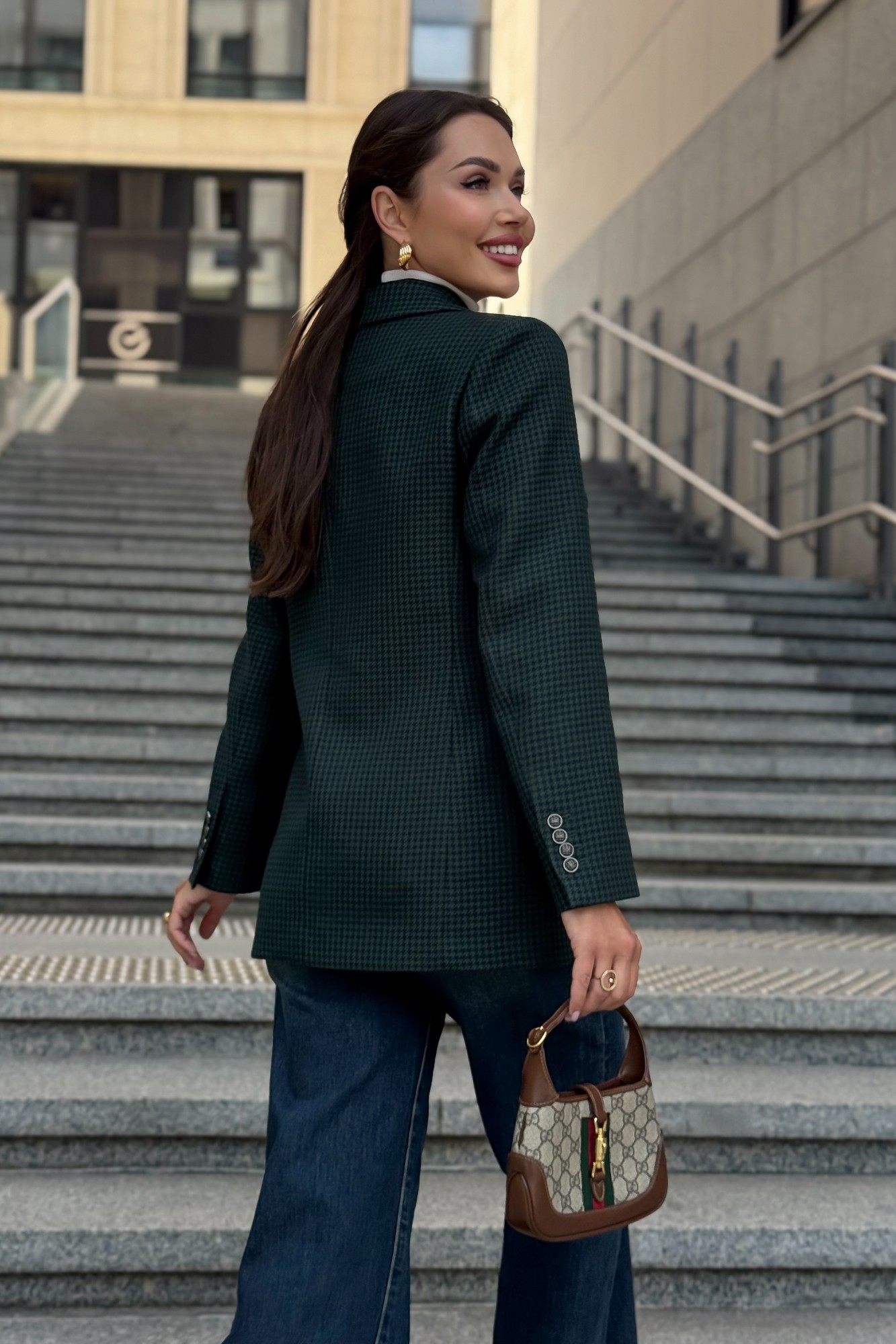 Длина жакета по среднему шву спинки – 72,0см (±2,0 см), Ширина на уровне глубины проймы – 50,0 см (±1,0 см), Ширина на уровне линии талии – 47,0см (±1,0 см), Ширина на уровне линии бедер – 52,0 см (±1,0 см), Длина рукава – 61,0 см (±1,0 см), Ширина рукава вверху – 17,0 см (±1,0 см), Ширина рукава внизу - 13,0 см (±0,5 см), Длина плеча – 12,0 см (±0,5 см).