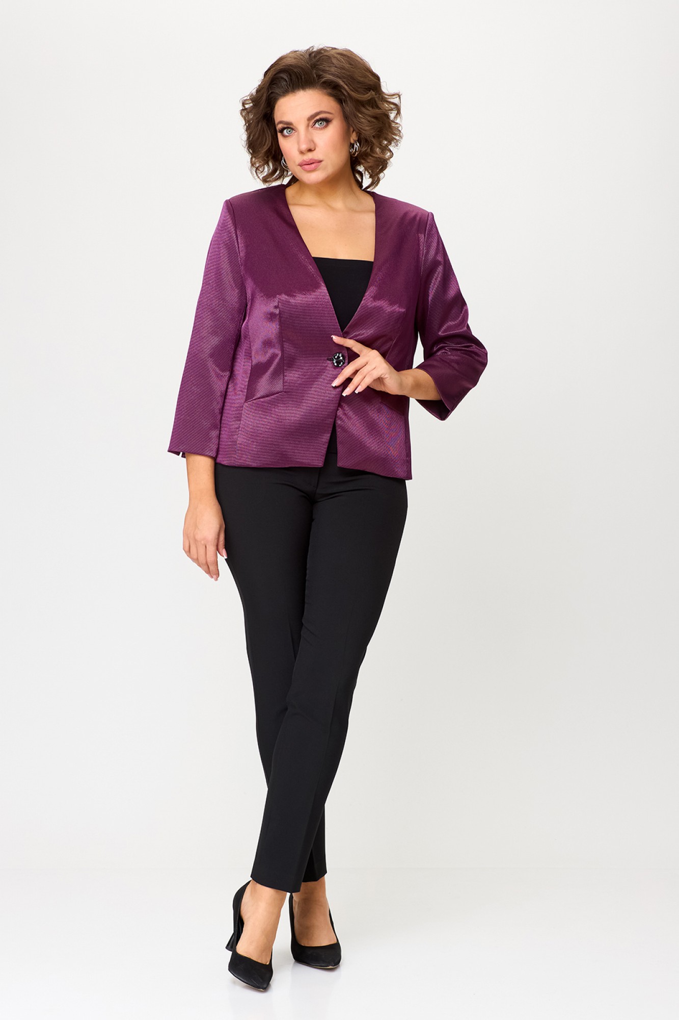 Базовая модель жакета, актуальная в любом гардеробе. Силуэт полуприлегающий. Застёжка центральная на петлю и пуговицу. Без воротника. Рукав втачной 7/8 с разрезом по локтевому шву. По спинке средний шов и рельефы. Ткань не мнется и хорошо стирается. Жакет полностью на подкладке. Пуговица может отличаться от представленной на фото.