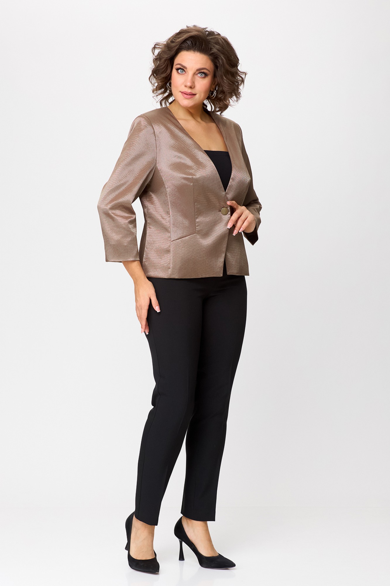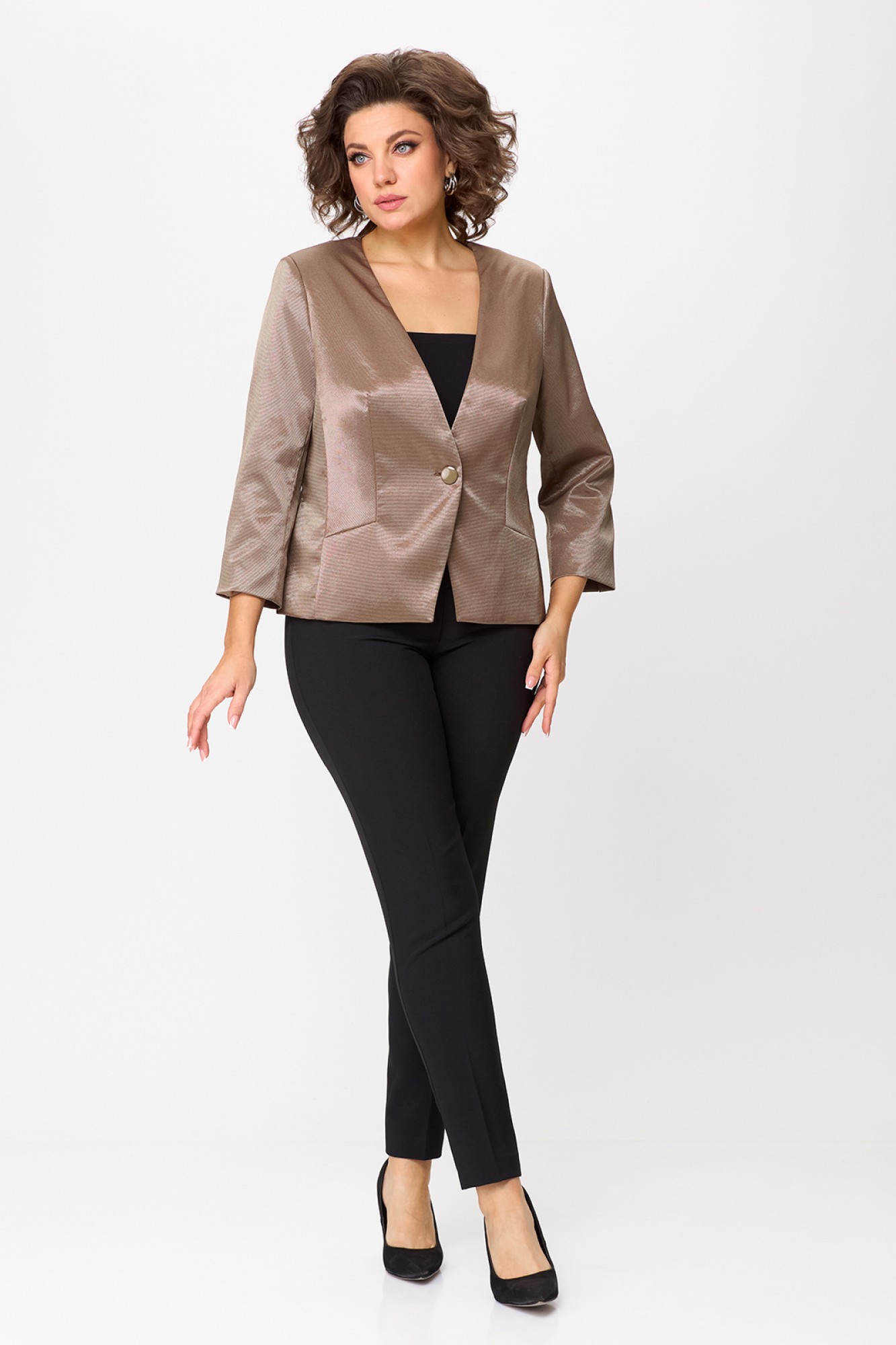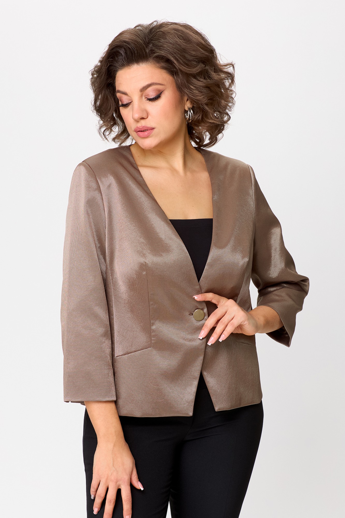 Базовая модель жакета, актуальная в любом гардеробе. Силуэт полуприлегающий. Застёжка центральная на петлю и пуговицу. Без воротника. Рукав втачной 7/8 с разрезом по локтевому шву. По спинке средний шов и рельефы. Ткань не мнется и хорошо стирается. Жакет полностью на подкладке. Пуговица может отличаться от представленной на фото.