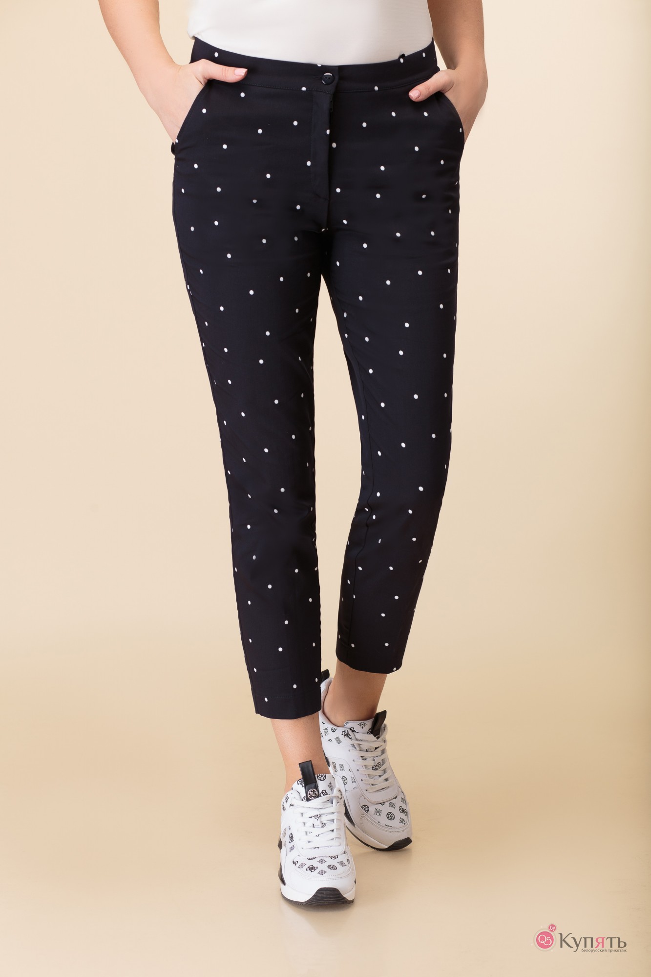 Брюки Anelli 505 белый фон синий принт
