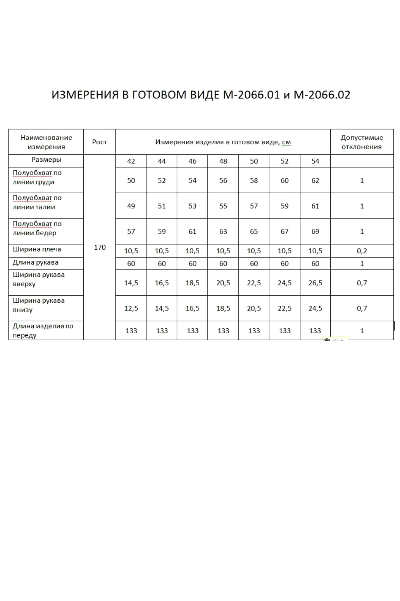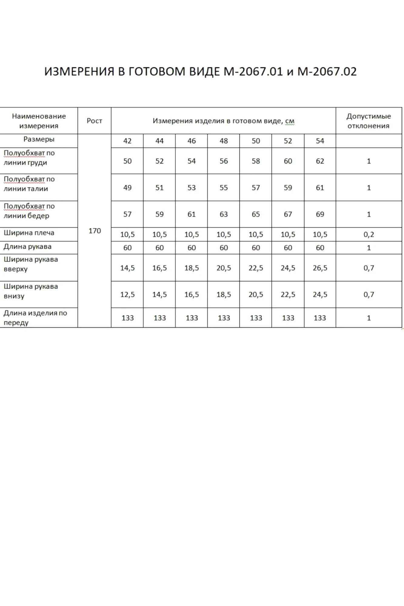 Размеры одежды